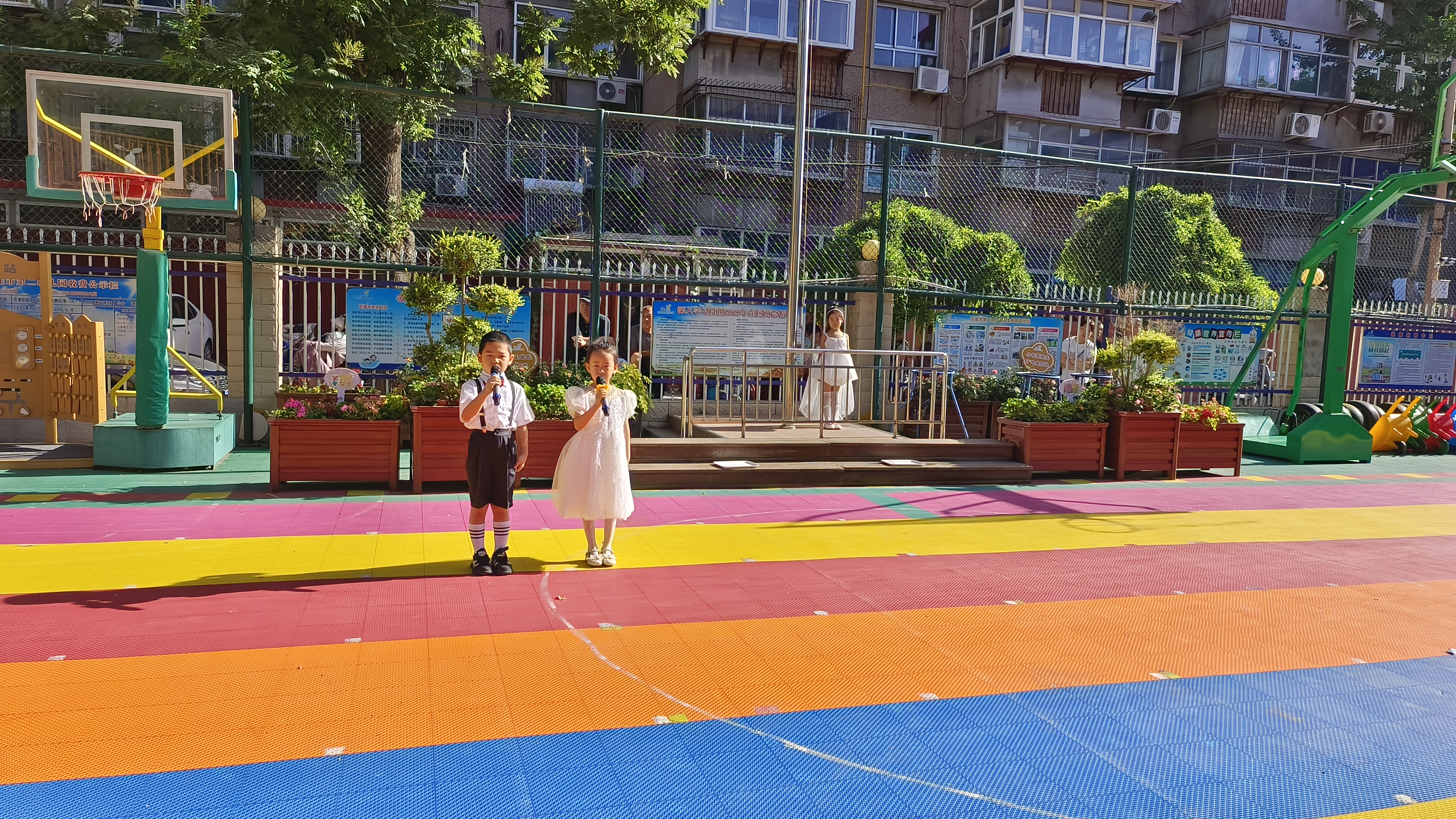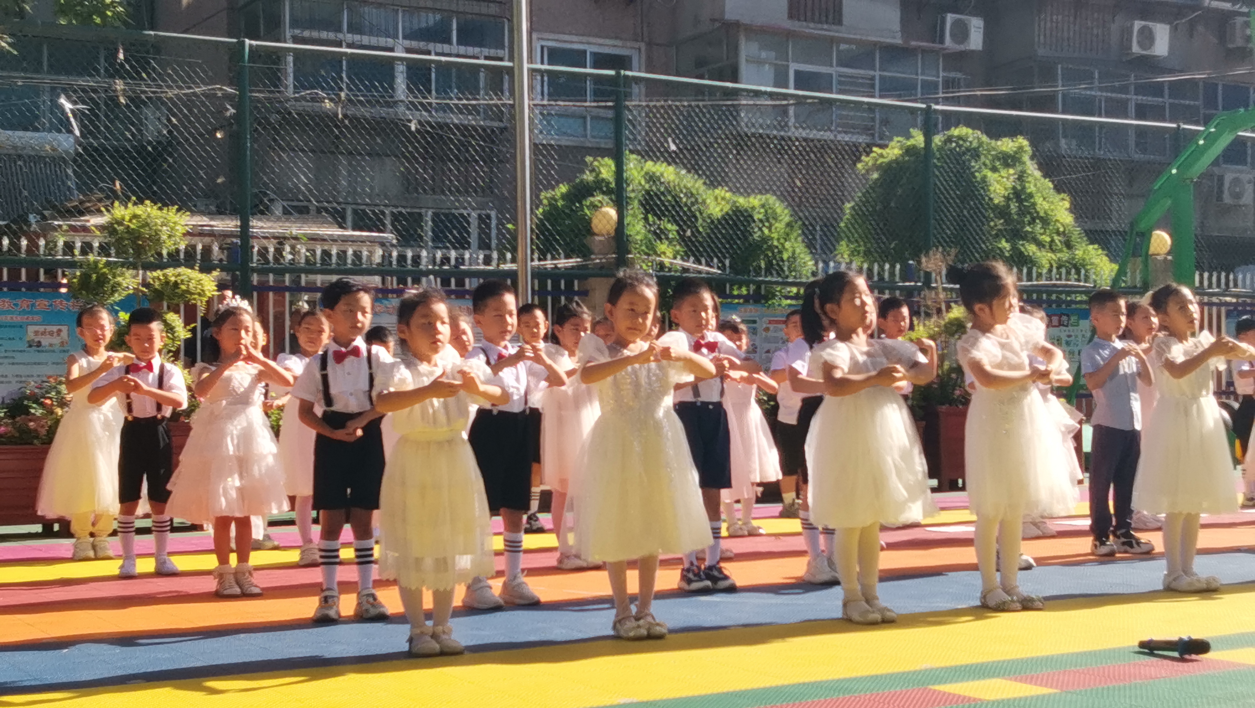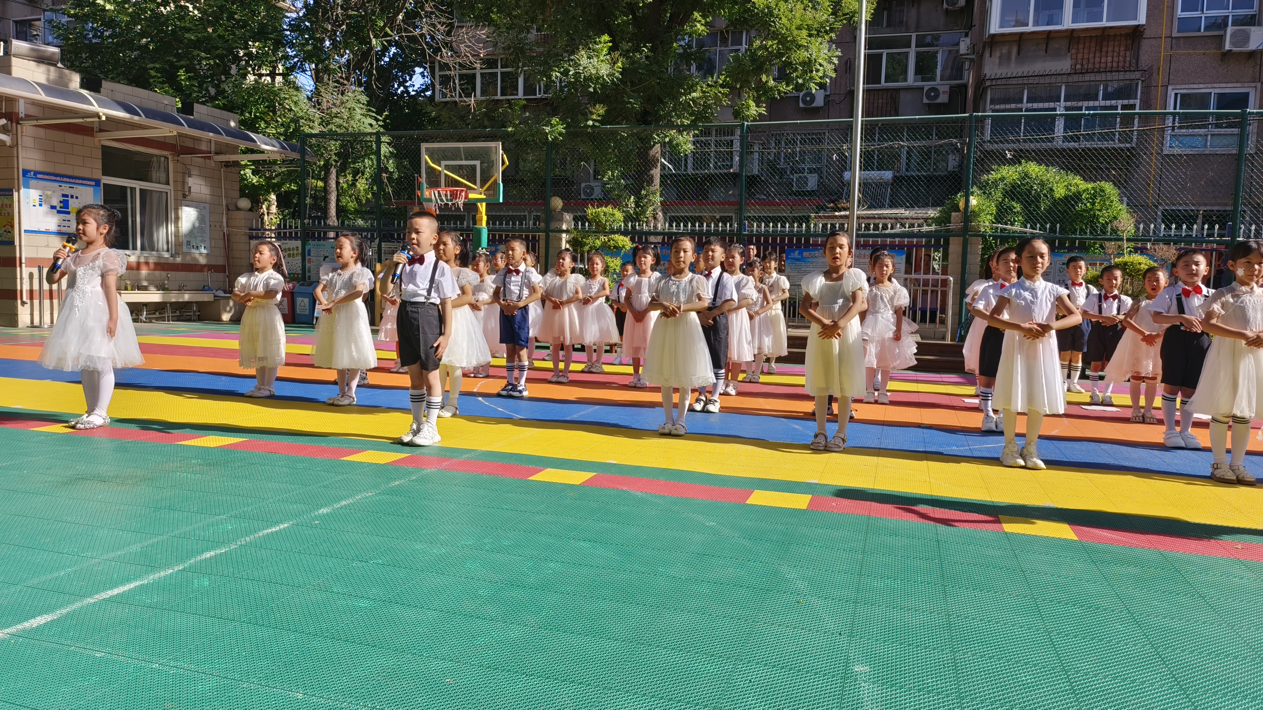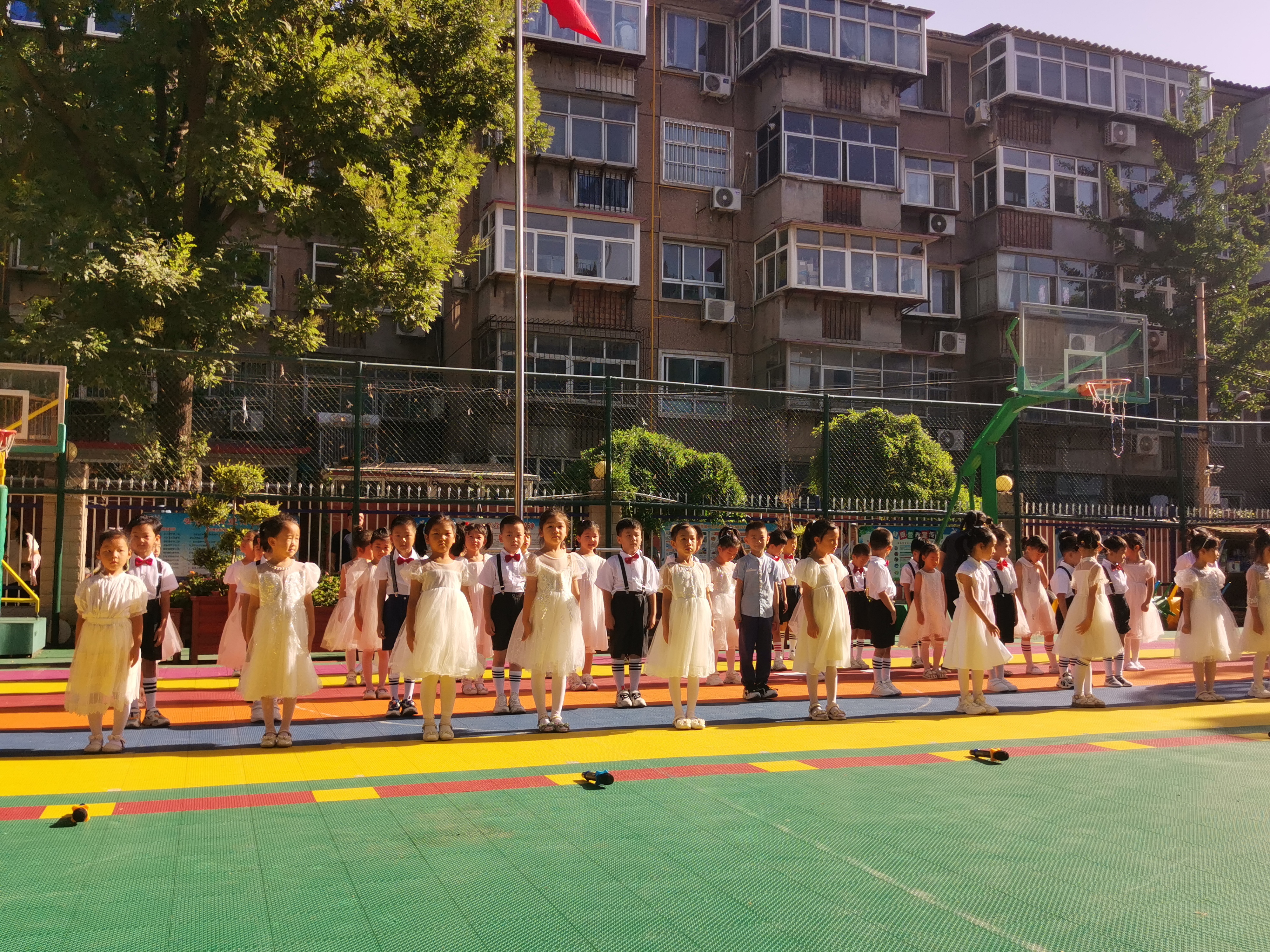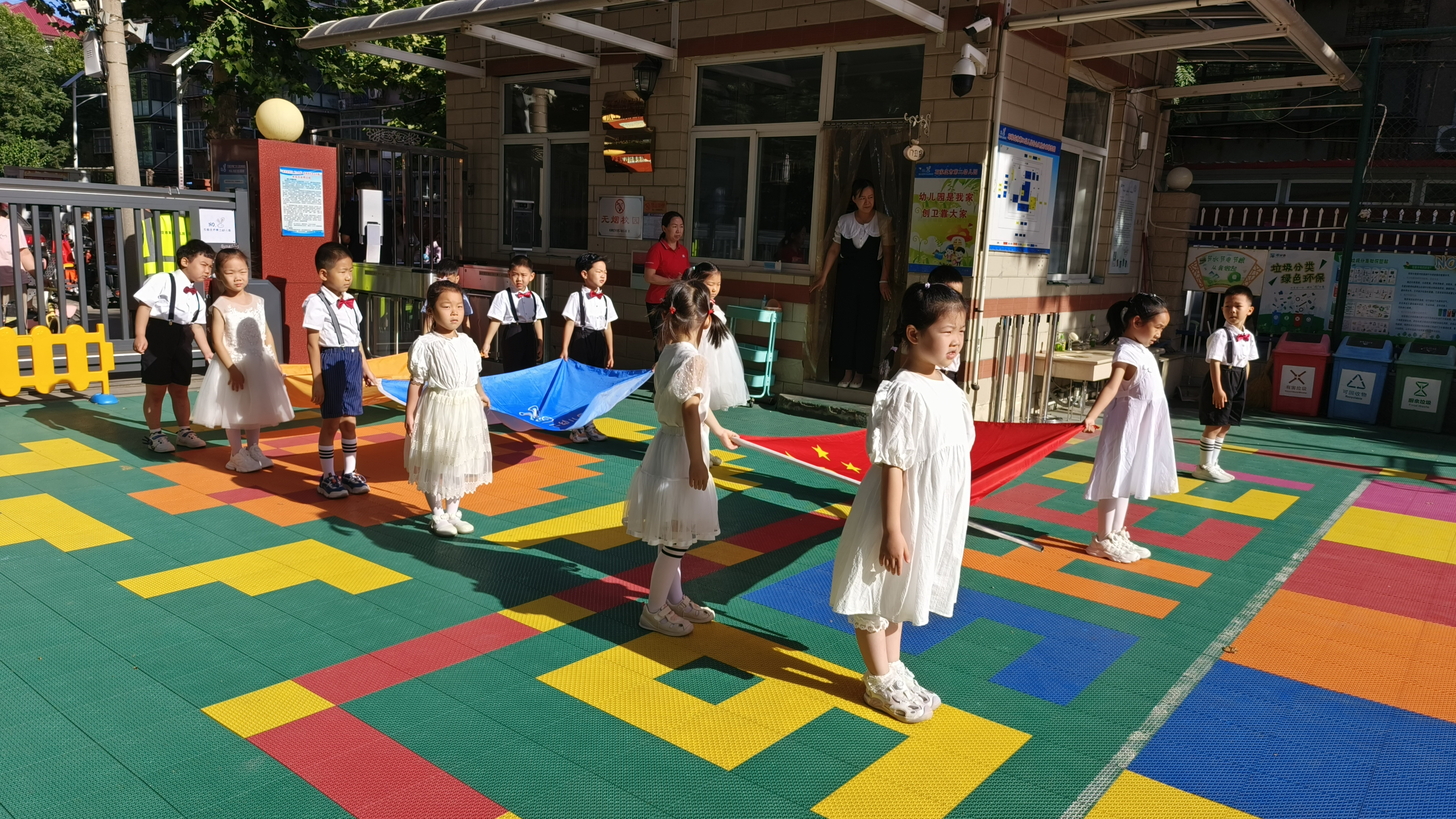 在这个阳光明媚的早晨,幼儿园迎来了一次不同以往的升旗仪式。大班的全体小朋友以“再见了,我的幼儿园”为主题的升旗活动,感谢三年来给予爱和陪伴的老师和同伴,向幼儿园告别。 小小的仪式,大大的情怀。伴着初升的朝阳,我们用庄严神圣的升旗仪式来表达对祖国的热爱。在孩子们心中,种下一颗爱国的种子。小小护旗手们昂首挺胸,迈着坚定的步伐,小脸上写满了庄重与认真。我们的心中不禁涌起了深深的感慨。他们手中的五星红旗,仿佛也在诉说着离别的情绪。随着国歌奏响,全体小朋友抬头凝视,注视着国旗冉冉升起,那是对祖国的敬仰,也是对即将结束的幼儿园生活的眷恋。这是孩子们在幼儿园最后一次承担如此重要的任务,每个人都格外珍惜。 当时钟走过三年,在这个炽热的夏天,终于到了说“再见”的时候,孩子们心中万般不舍,我们小朋友把留恋寄予在诗歌里,给幼儿园最美的爱的告白。 这场特别的升旗仪式,不仅是对孩子们幼儿园生活的一次美好纪念,更是他们成长路上的一个重要标记。在未来的日子里,愿他们带着这份责任和荣誉,继续前行,绽放出更加灿烂的光芒。