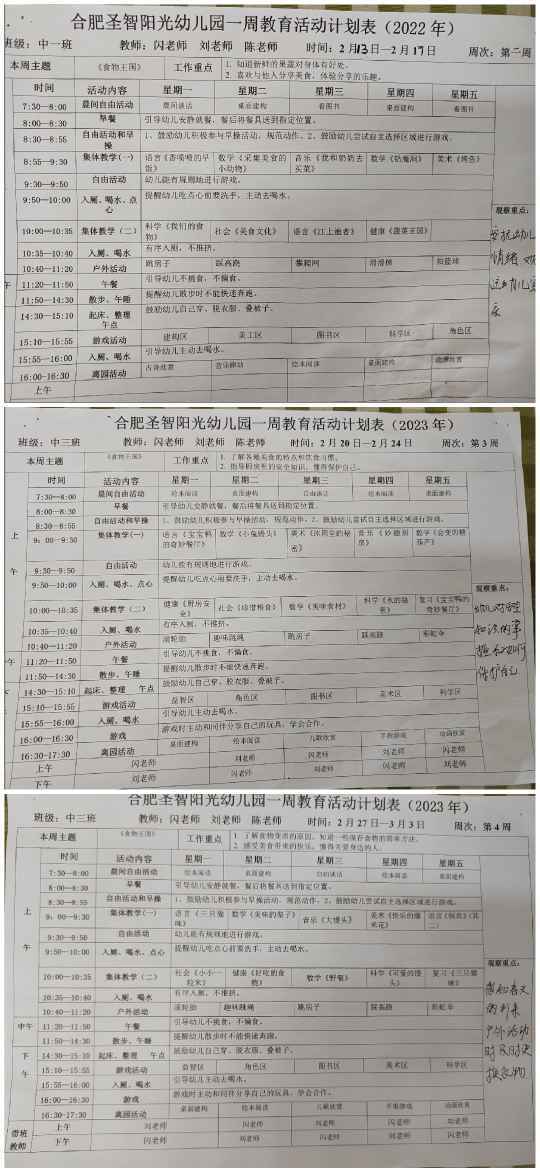二月份周计划