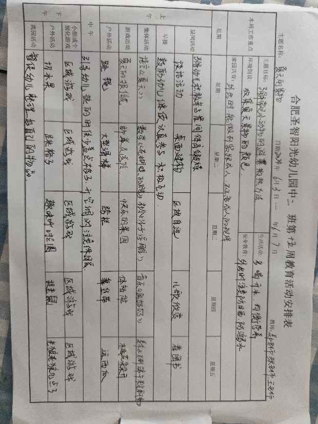 六月份周计划