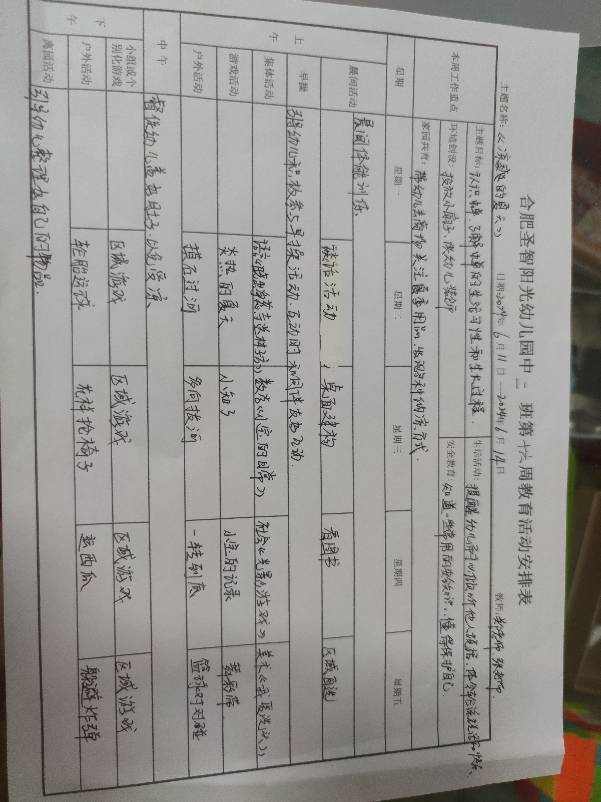 六月份周计划