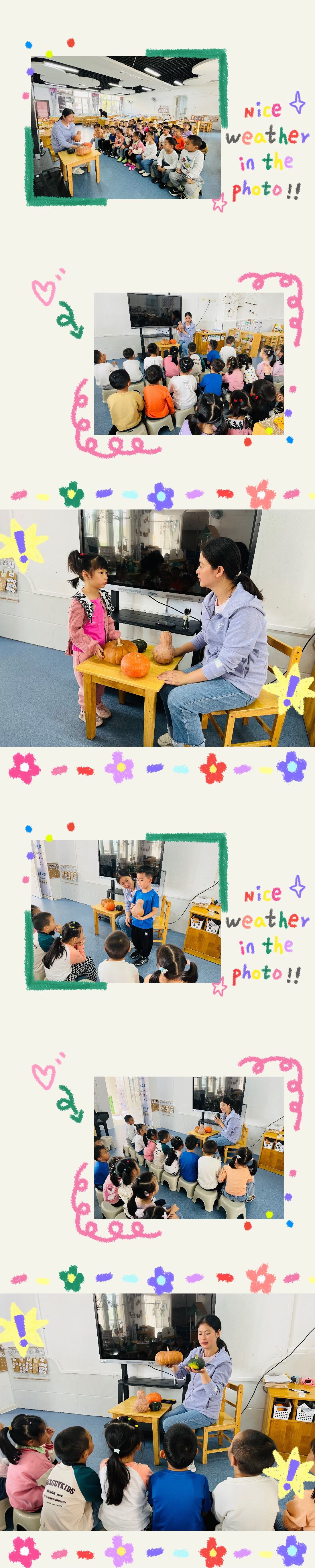 本周孩子们带来了实物南瓜,通过亲身感知:看一看、摸―摸、闻一闻等深入了解,对南瓜有了进一步的认识,快来看看孩子们的表现吧!