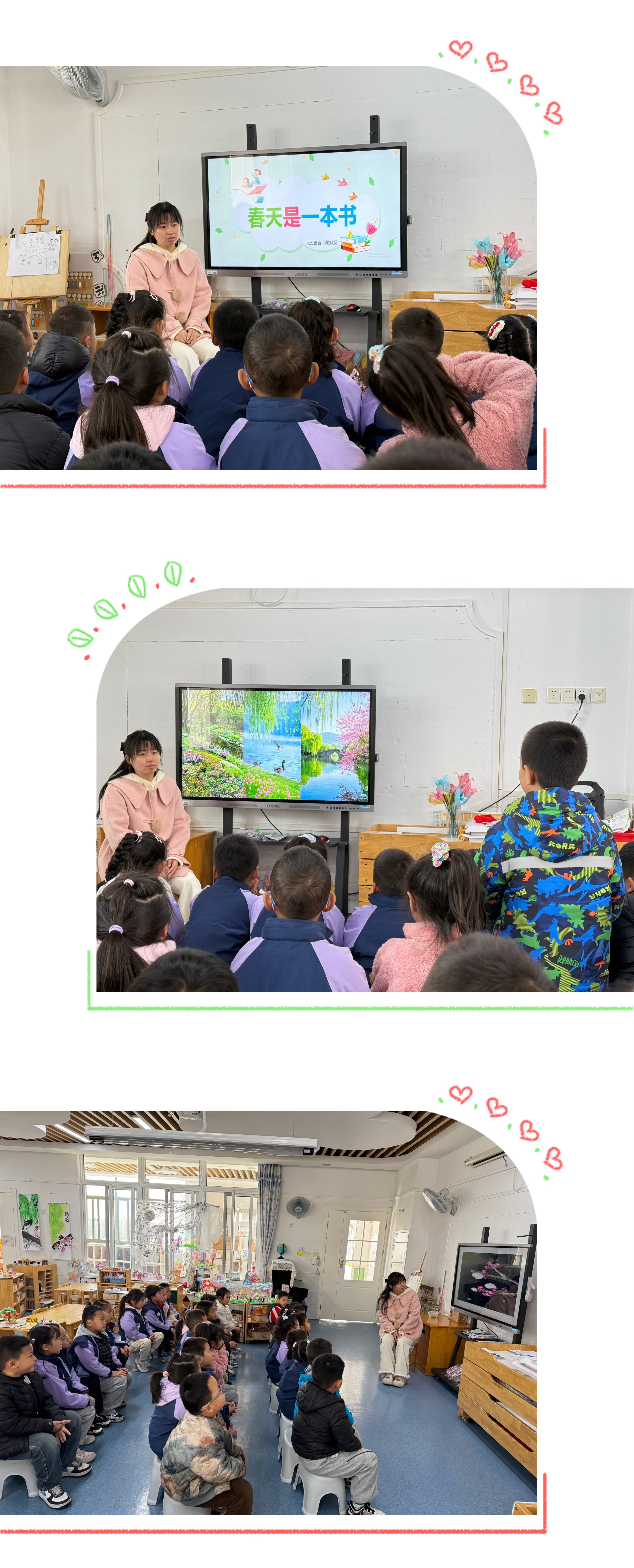 春天是一本会笑的书 小池塘笑了 酒窝圆又大 小朋友笑了 咧开小嘴巴