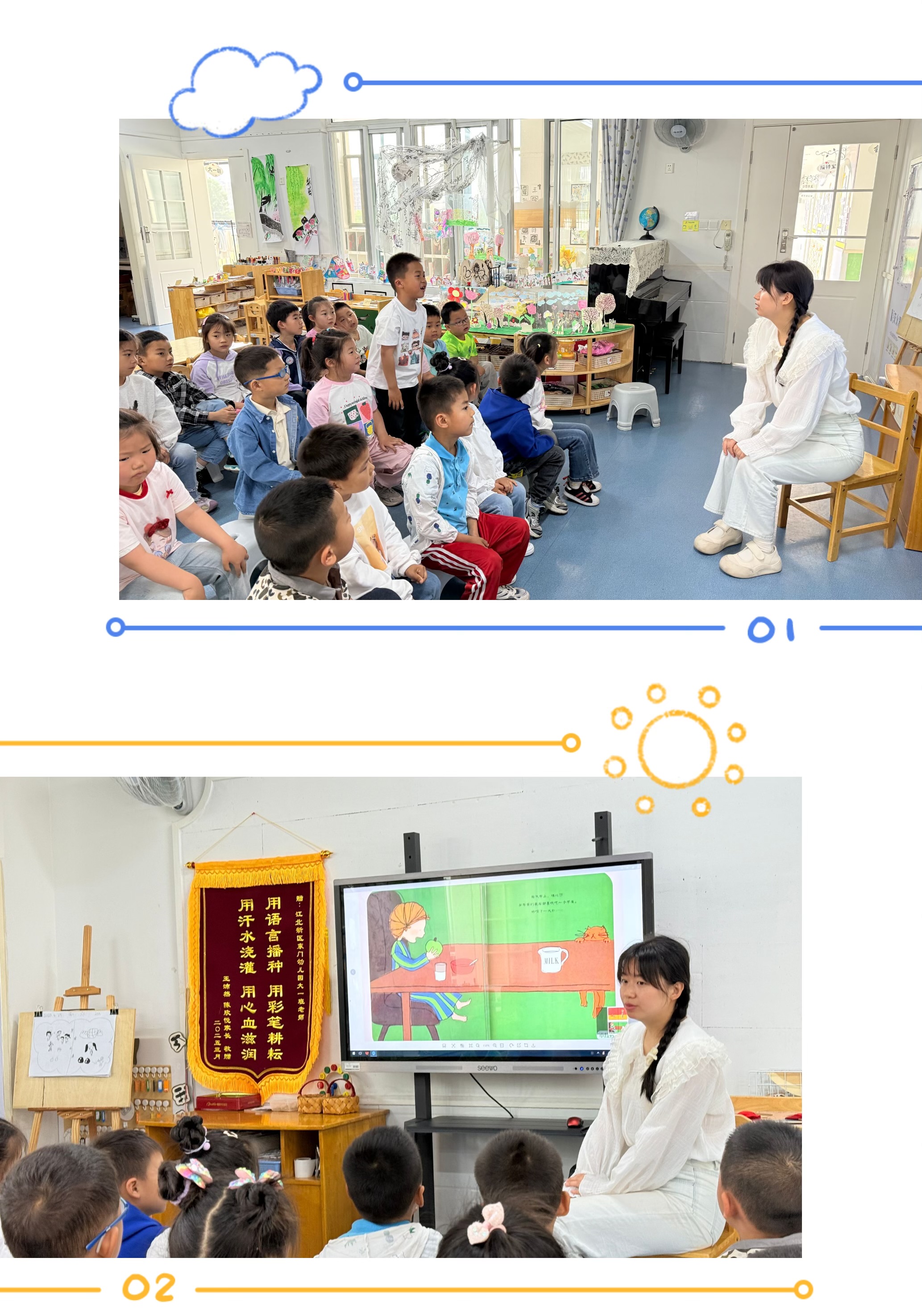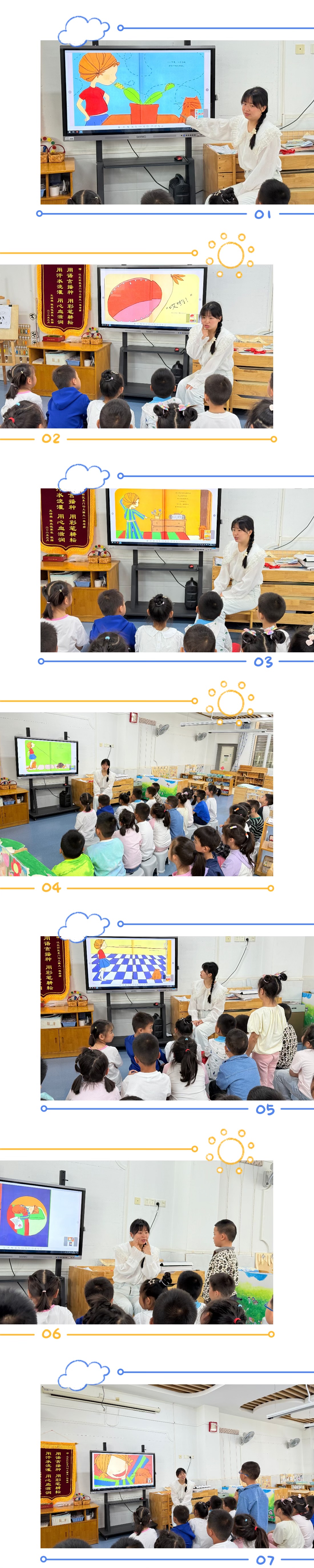 在活动过程中通过欣赏故事画面,首先,故事中牙齿小精灵的出现,化解了幼儿面对掉牙的不安情绪;其次,故事中的小女孩想尽一切办法要让松动的牙齿掉落的行为,贴合幼儿解决问题的方式,容易引发幼儿产生共情;最后,小女孩打了一个喷嚏,松动的牙齿自然而然地掉了,出人意料的故事结局,缓解了幼儿面对掉牙现象的不安情绪。