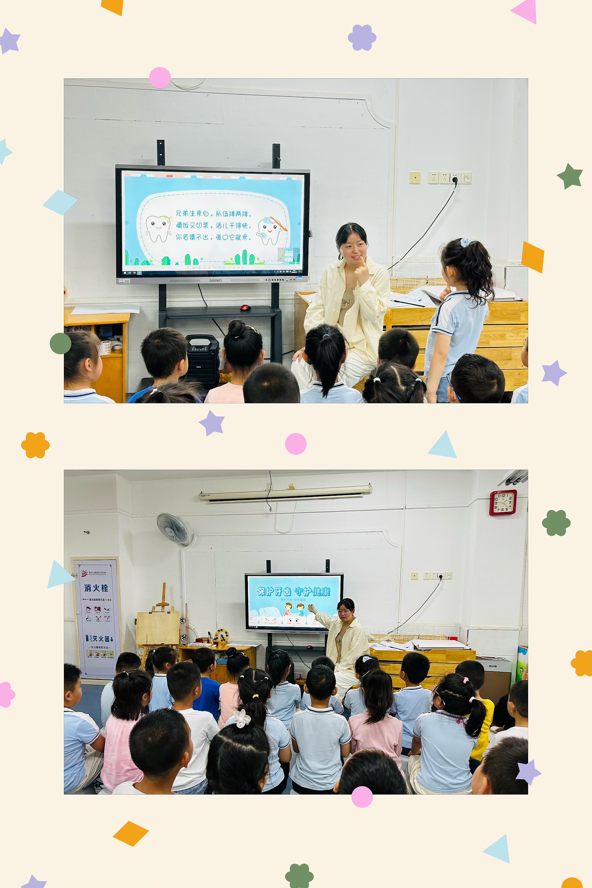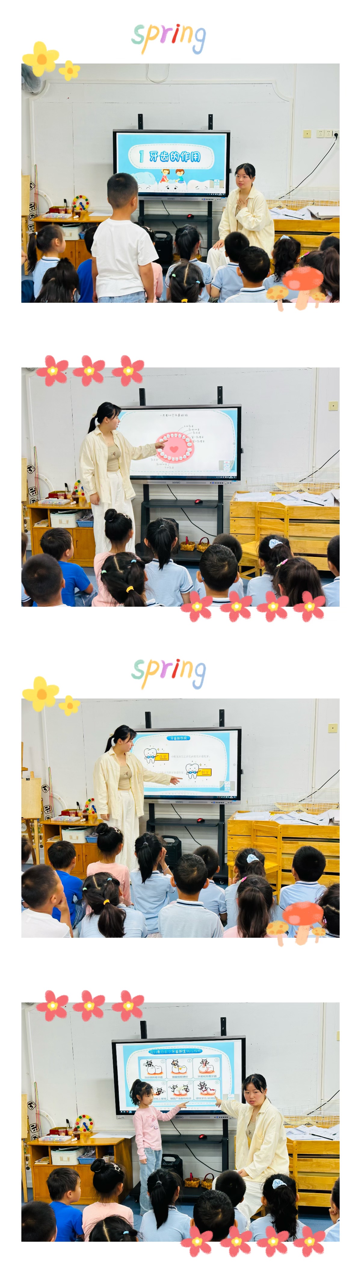通过观看诗歌图片和教师讲解,孩子们知道如何正确刷牙和保护牙齿。