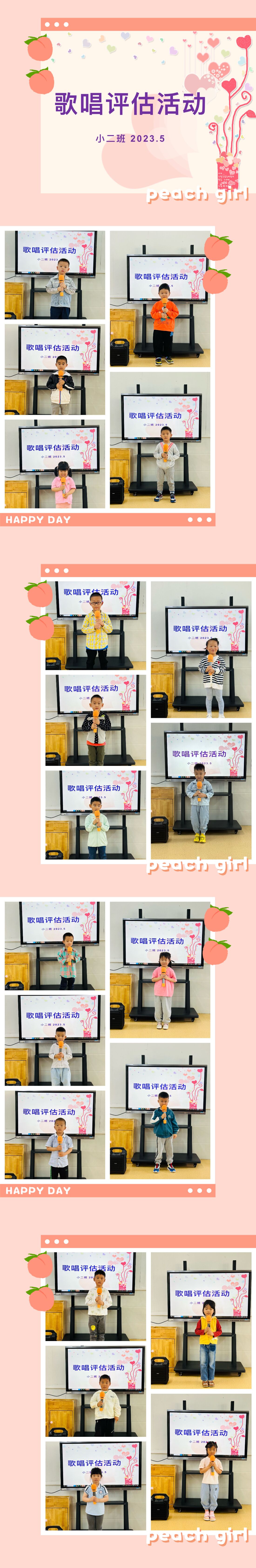歌唱活动是幼儿园音乐教育活动的重要组成部分,发挥着其特有的教育作用。歌词的演唱、节奏的朗读有益于幼儿语言能力的发展;幼儿在歌唱活动中技能与音乐知识的学习,可以提高他们的音乐感受能力、欣赏能力及表现能力。《指南》中指出:音乐活动在幼儿的五大领域中占据着很重要的地位,对促进幼儿心理健康发展有着其他活动所无法替代的功效。一次成功的音乐教育活动,不仅要让幼儿获得音乐知识,更能使幼儿快乐的参与到音乐活动中,促进幼儿创造力、表现力的发展。为了给幼儿展示舞台和机会,锻炼幼儿的自信和舞台表现力,培养幼儿的艺术素养,我们带领幼儿开展了“歌唱”专项评估动。