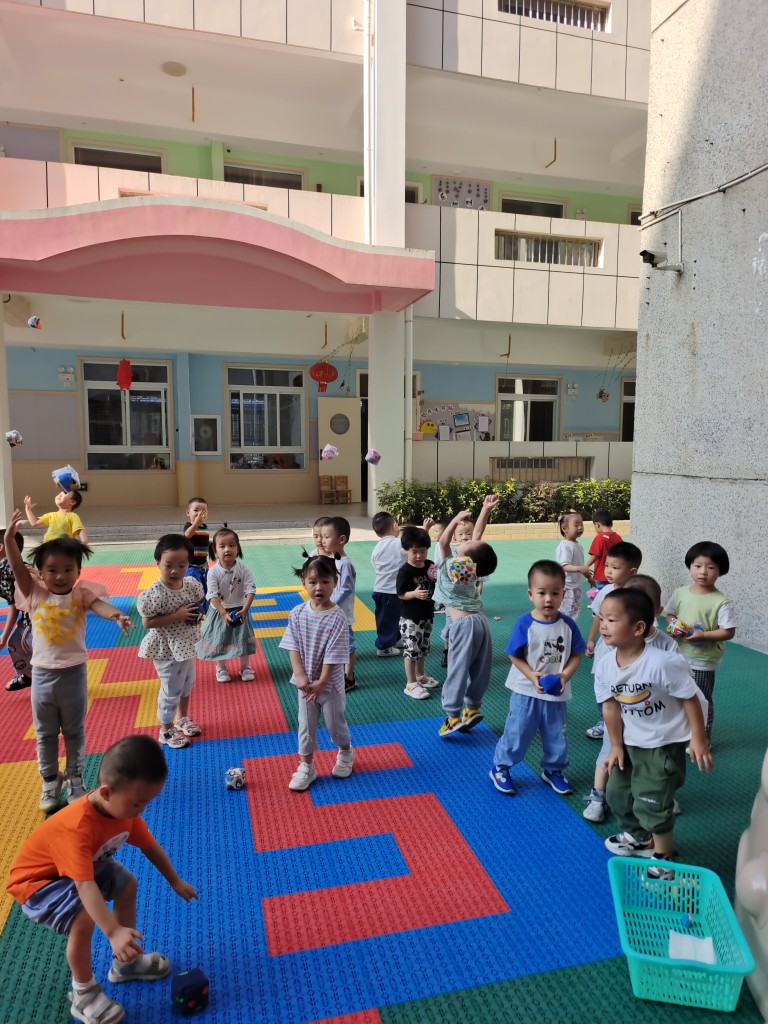相片描述:玩沙包,练习排队行