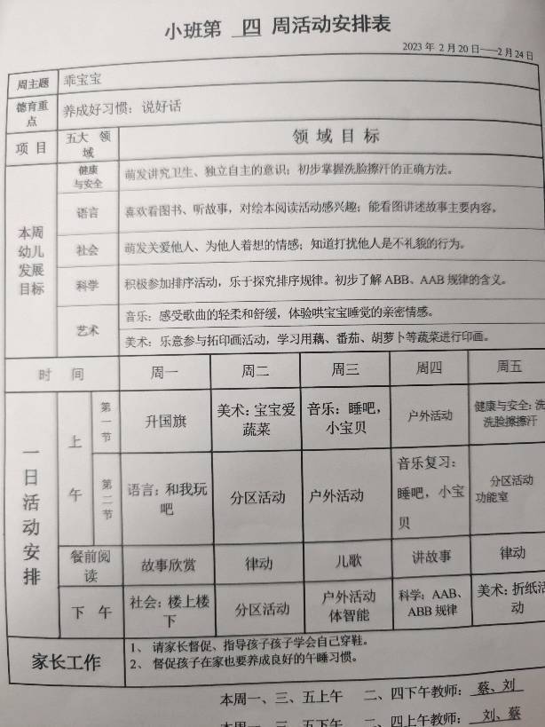 第四周活动安排表