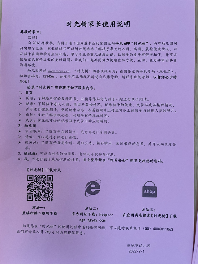 请各位家长按照这个单子上下载时光树,我们以后会在时光树上面上传幼儿的生活学习活动的照片及视频,还有通知公告也会在上面公布。