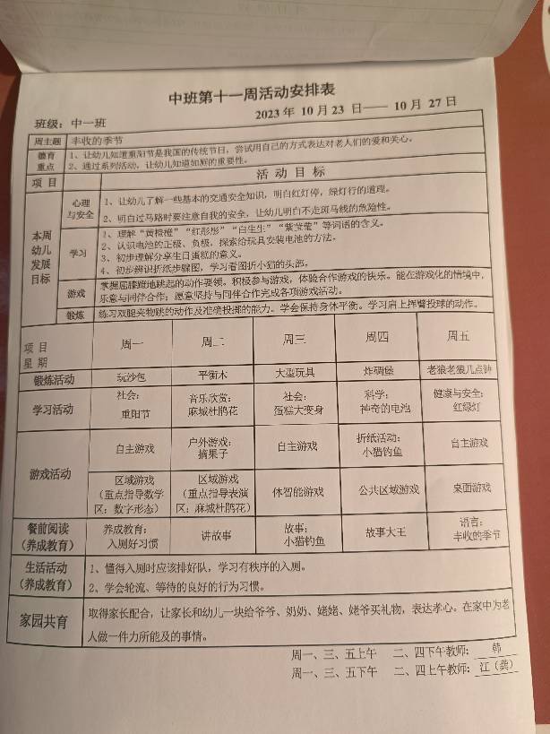 秋季第十一周活动安排