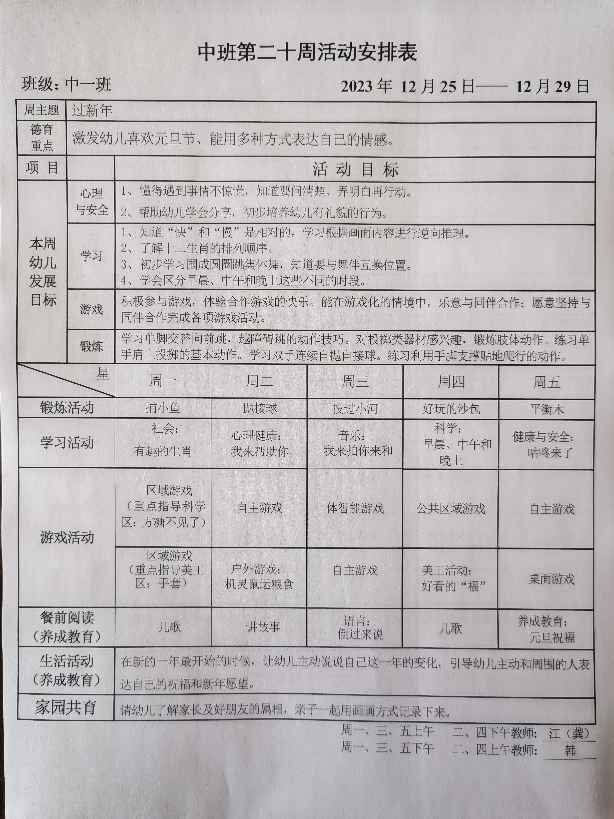 秋季第二十周活动安排