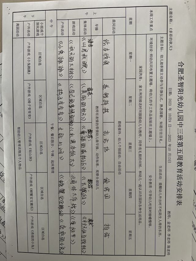 十月第五周周计划安排表