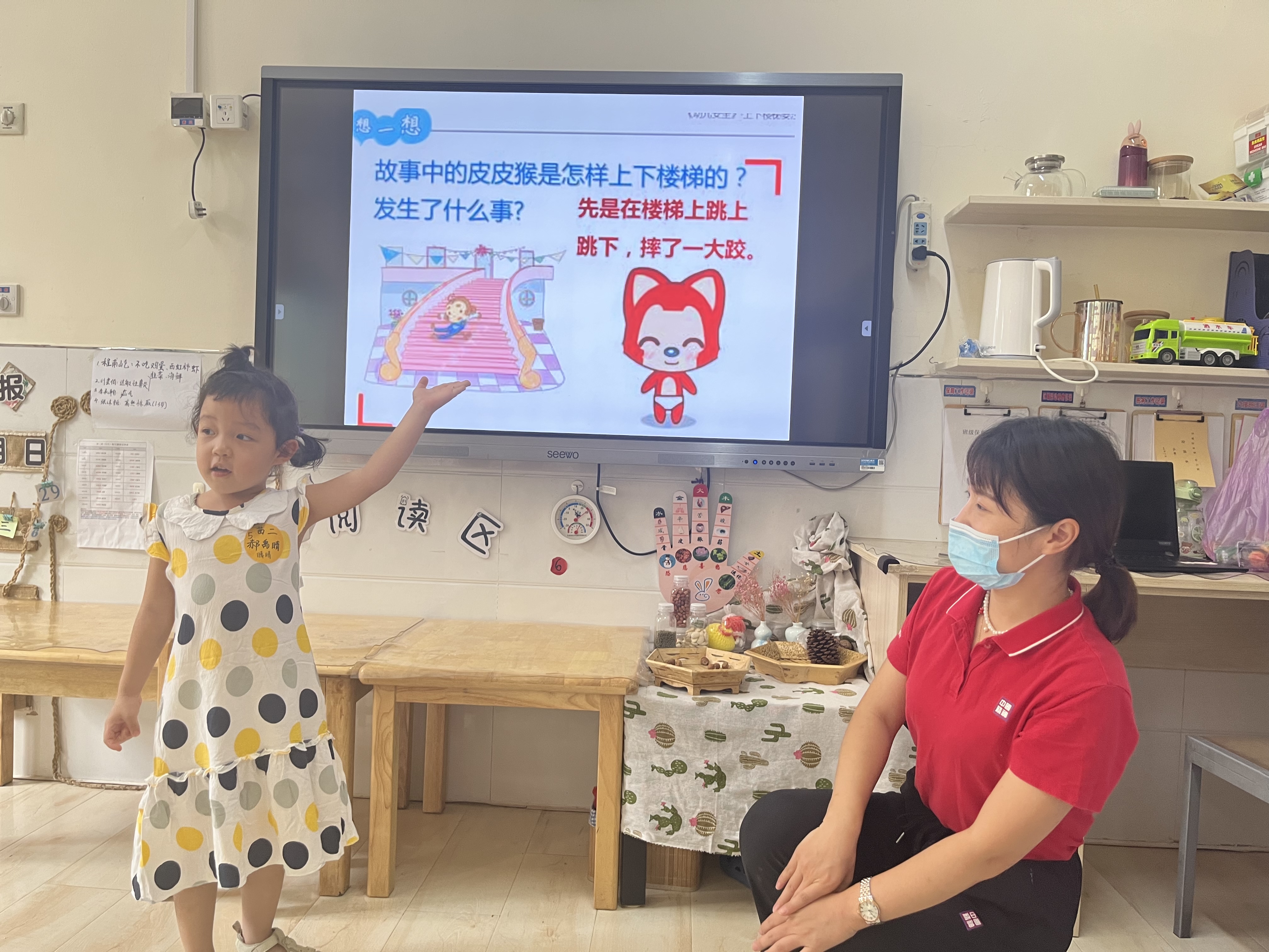 幼儿在幼儿园上下楼梯时像玩游戏一样,很容易出现意外,这是我们最担心的事情之一。《幼儿园教育指导纲要》中指出:“教师应该把保护幼儿的生命和促进幼儿的健康放在工作的首位。”幼儿年龄小自我保护能力比较弱, 为了避免幼儿在上下楼梯过程中发生拥挤、碰撞甚至摔倒等意外情况,初步树立幼儿生活中的安全意识,并养成上下楼梯靠右行走,不追逐打闹,照顾前后的良好安全习惯。我们一起学习了“上下楼梯”安全课程,通过故事情景让幼儿了知道上下楼梯需要注意的地方。 小朋友在上下楼梯的时候,不要害怕也不要着急,一个跟着一个上下楼,不拥挤,不抢先,靠右边走,眼睛看着前方,右手扶住栏杆,脚踩稳台阶一级一级的向前走,在老师的引导和小朋友的亲身演练中,我们又学会了一项安全保护自己的常识,我们会在以后的学习中做一个讲文明,守规矩的好宝宝。 我们还一起学习了上下楼梯的小儿歌: 《上下楼梯歌》 上下楼梯不拥挤,一个一个跟得齐。 手扶栏杆慢慢走,一阶一阶走上去。 下来还是靠右边,一个一个有顺序。 保证安全是第一,一定一定要牢记。 “上下楼梯”安全教育活动,不仅让幼儿学会了上下楼梯的正确方法,还提高了幼儿的自我保护的安全意识,同时也让幼儿学会了与同伴友好相处。安全教育要融入在生活中的每件小事中,幼儿安全教育必须从小事抓好。