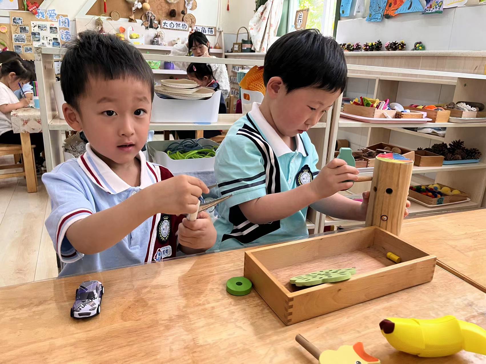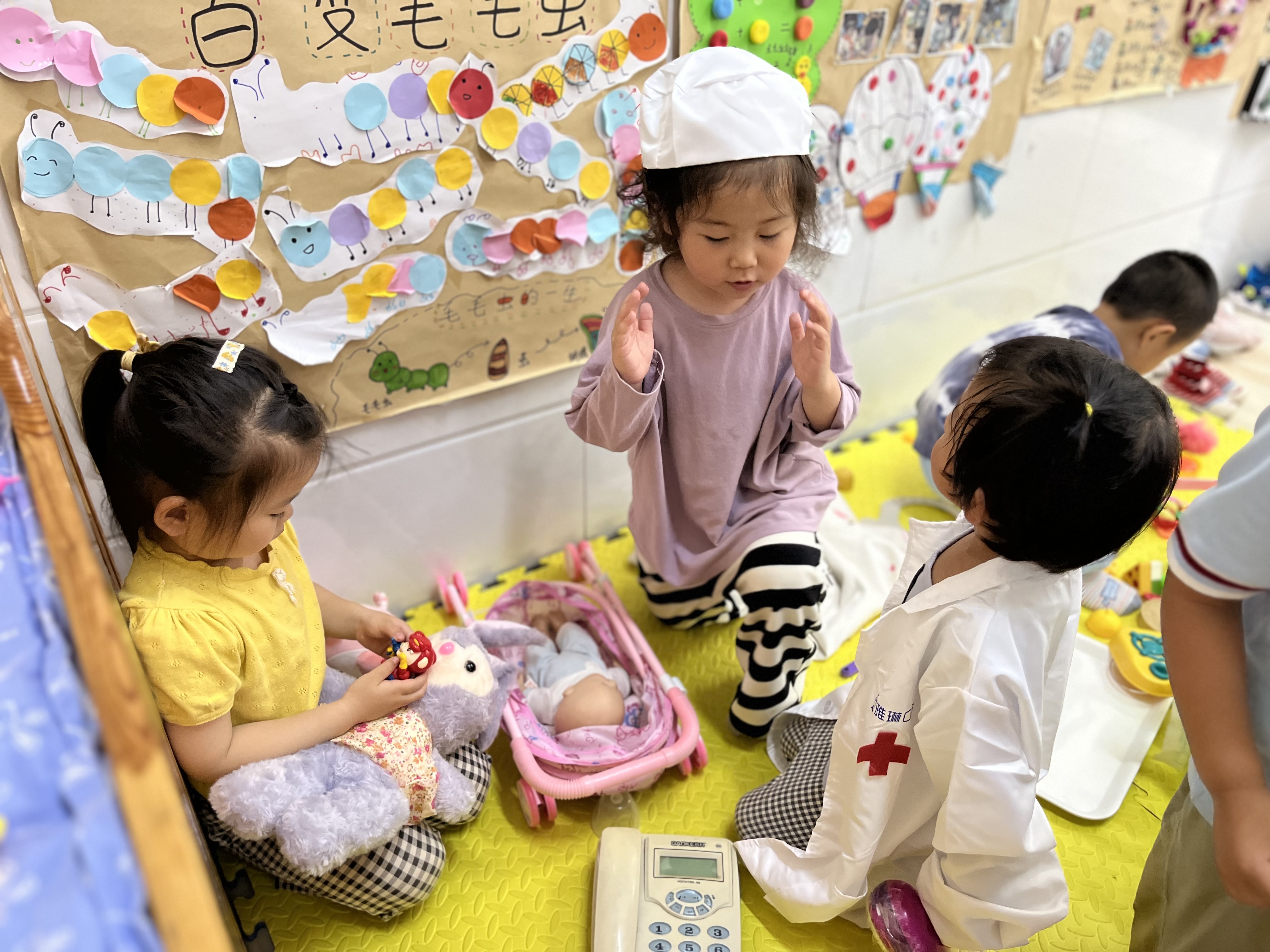 区域活动是幼儿非常喜欢的一种学习活动,是当前幼儿园实施素质教育,推动幼教改革的一种重要的教育活动形式,它能促进幼儿全面素质的形成和提高。区域设置非常适合幼儿,根据幼儿健康、社会性、认知、语言、艺术等方面发展的需要,站在幼儿的角度,从孩子的心理出发,为孩子创设了益智区、美工区、娃娃家、阅读区、建构区等不同形式的区域活动。为幼儿提供了动手、动脑、并且能按照自己的兴趣和能力进行活动的场所和施展才能的机会。 我们根据近期的教育目标和孩子发展水平有意识地选择和投放一些材料。有计划、有目的投放材料是区域活动的物质支柱,是幼儿活动的工具,材料投放的是否得当,对幼儿的发展起着决定性作用。为幼儿创设一个喜欢的、自由的、开放的环境,引导幼儿自主地进行活动,培养幼儿积极主动、活泼开朗的个性,促使幼儿乐意和他人交往,学习互助、合作和分享。 活动开始前先组织幼儿说说:你今天玩了什么?和谁一块玩?之后逐步引导幼儿说说:你是怎样玩的?谁玩得好?为什么?让幼儿在讲评中把自己的经验感受与同伴分享,体验成功的快乐,发展口语表达能力。而教师的讲评则以表扬、鼓励为主,推广幼儿的成功经验,把活动中的不足之处告诉大家,提出新的游戏要求和规则,使幼儿在愉快、自信的感觉中结束。