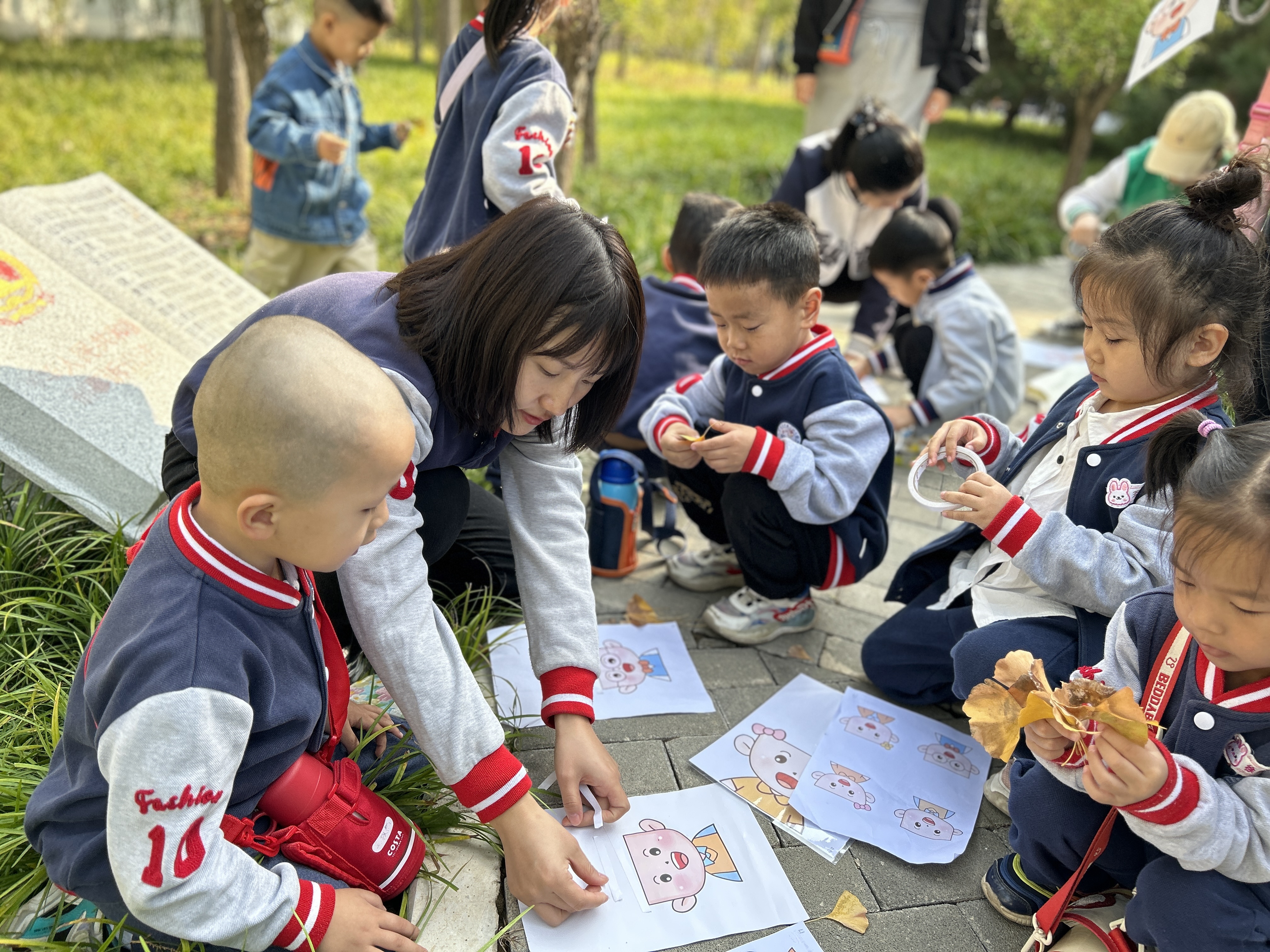 沐浴着金秋的阳光,追逐着十月的和风,我们漫步在林间小道上。10月16日上午,我们班的小朋友们进行了秋季远足活动,让幼儿亲近自然,感受秋日的美好。 太阳当空照,微风带着笑,秋日多么好,我们出发啦!吃完早饭后,小朋友们在操场集合,整理好自己的物品,跨上小水壶,带着满满的期待,踏上了远足的路程。一路上,孩子们非常兴奋,叽叽喳喳的讨论着路边的风景,到达公园后,就被路边的小草和大树吸引了。原来,秋天的树叶是各种各样的,有五角枫叶,一条条的垂柳,金黄的银杏,还有像小蘑菇头一样的冬青,大自然真奇妙。 美景最是让人留恋,此刻,我们要用手中的画笔记录下这多姿多彩的秋景。只见小朋友们捡了很多漂亮的树叶,或是坐在路边,或是趴在台阶上,开始装饰自己的作品,为娃娃设计漂亮的发型,描绘自己心中的风景。小小的画笔,大大的世界,相信每一个小朋友都在自己心中留下了一个不一样的秋天。 秋,金黄的季节,收获的季节—同春一样可爱,同夏一样热情,同冬一样迷人。我们在金秋时节,开启了一场寻秋、品秋的远足活动,在锻炼孩子们意志力的同时,又投身到大自然的怀抱,感受到秋日落叶纷飞、层林尽染的氛围,愿秋日美好永驻我们心中。