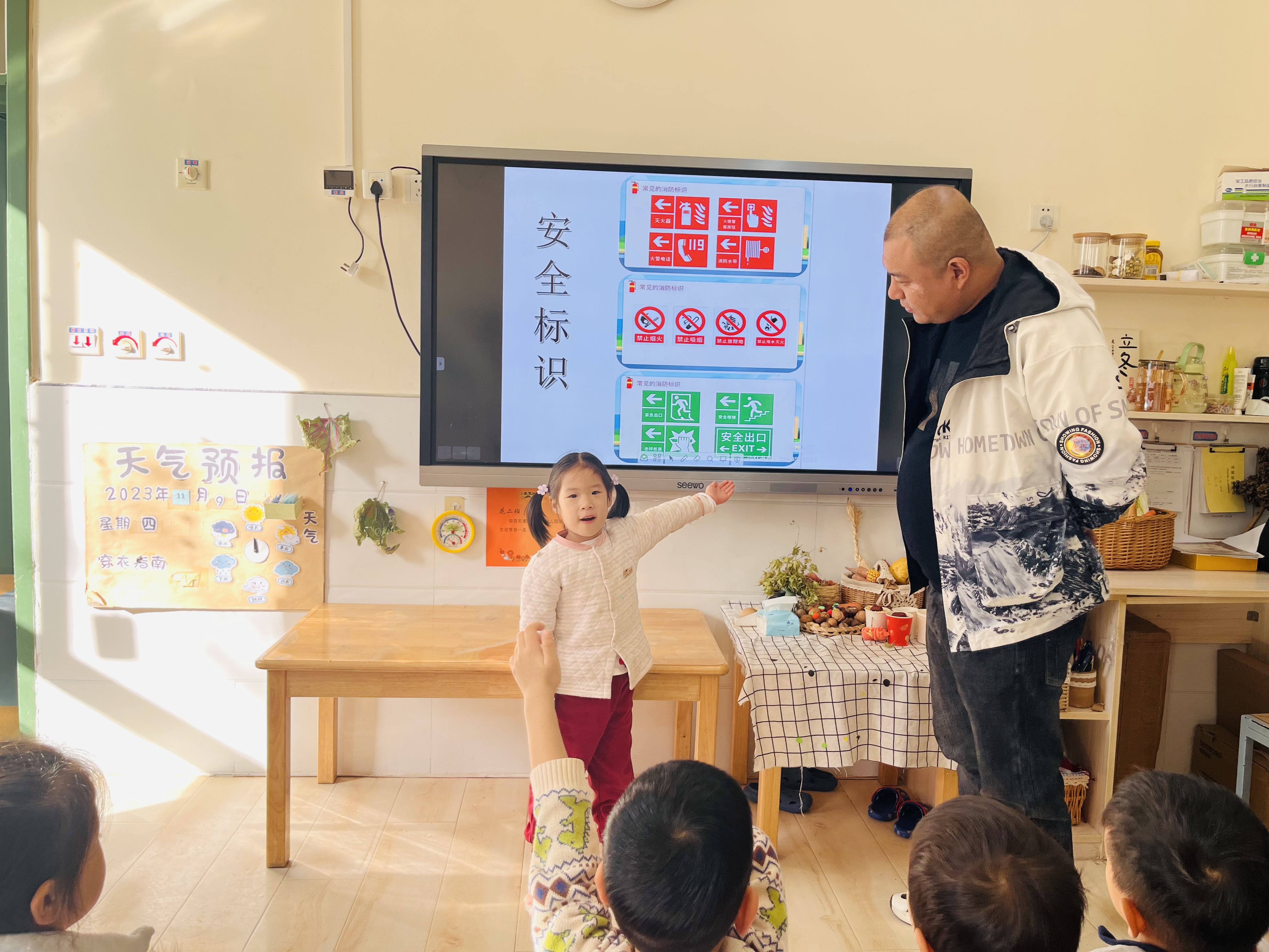 安全工作重于泰山,为了加强幼儿的安全意识、强化安全逃生技能,从小培养消防意识,掌握更多的自救、逃生、自我保护的具体方法,我班开展了消防安全专题教育活动。 我们根据幼儿年龄特点,通过课件、视频、故事、情景模拟等多种形式,对幼儿进行消防安全知识教育,老师和幼儿一起认识各类消防标志,知道离自己最近的灭火器和消防栓位置,了解灭火器正确使用方法,熟悉安全疏散路线,知道发生火灾后,第一时间拨打火警电话“119”,此外,幼儿园还带领小朋友一同参观了消防站等,通过一些列消防安全主题活动,帮助幼儿掌握基本的自护自救技能。 为了幼儿可以快速的逃离火灾现场,园里每月定期进行逃生演练,提高幼儿的逃生速度,加强幼儿的安全保护意识。随着一阵急促的警报声突然响起,消防安全疏散演练拉开序幕,各班师生迅速反应,幼儿在老师引导下,用湿毛巾捂住口鼻,弯腰低姿沿着指定疏散逃生路线迅速地从教室撤离到户外操场,按照紧急预案的疏散路线带领幼儿快速有序逃生。通过消防演练让幼儿提前了解了发生火灾等危险事故如何逃生的相关知识,并强调了可能遇到的危险以及需要注意的安全事项。消防演练过后,我们还进行了一系列的主题活动,其中就有阅读消防类绘本,讲给弟弟妹妹听,做好进一步的宣传和讲解;为了实现家园共育,我们还邀请了家长进课堂的消防宣传讲解,实现了家园携手,我们家园共同携手,留心各种防火安全细节,养成良好的消防安全习惯,筑起安全、和谐的防火墙,预防火灾,守护家园!