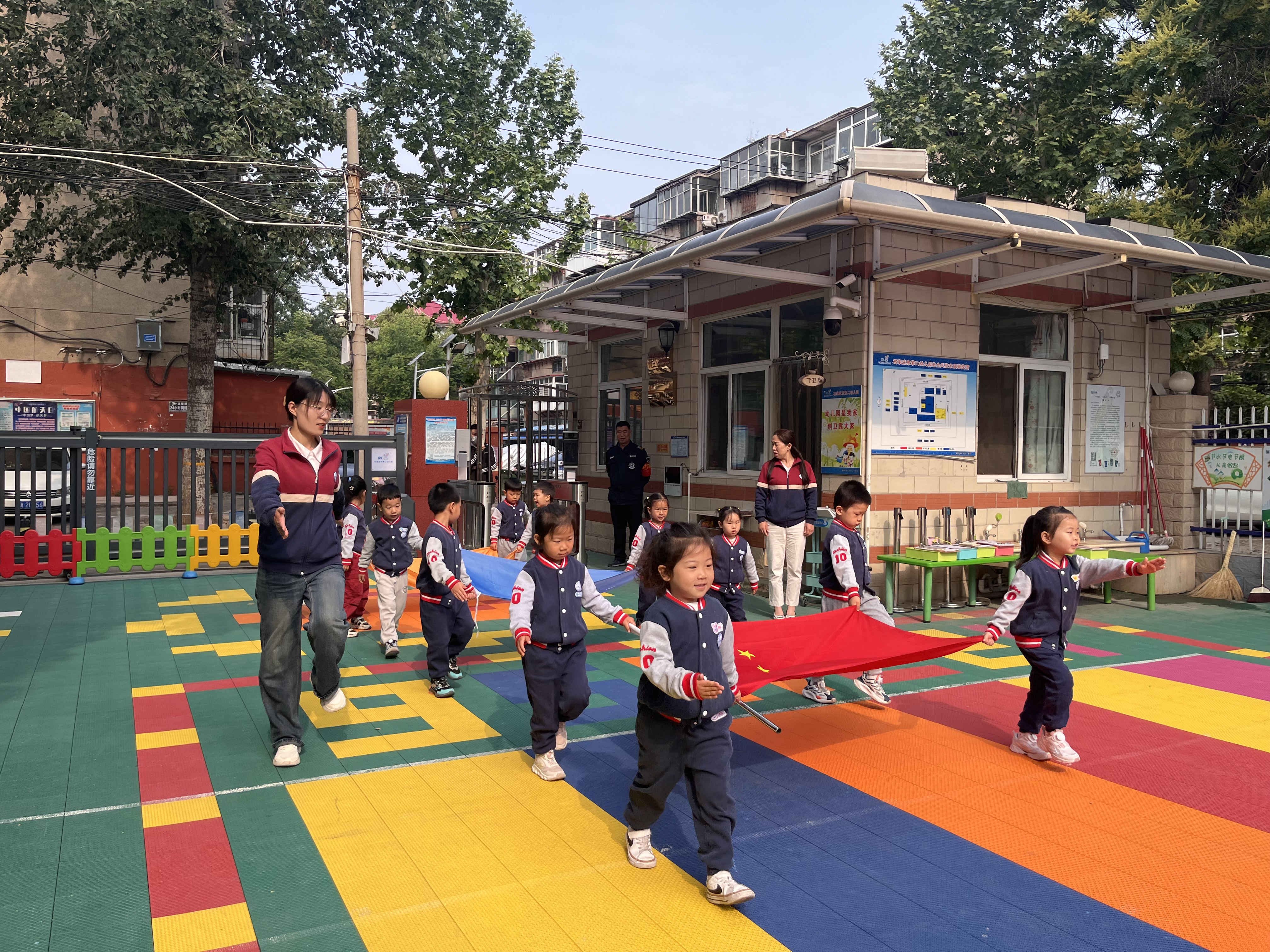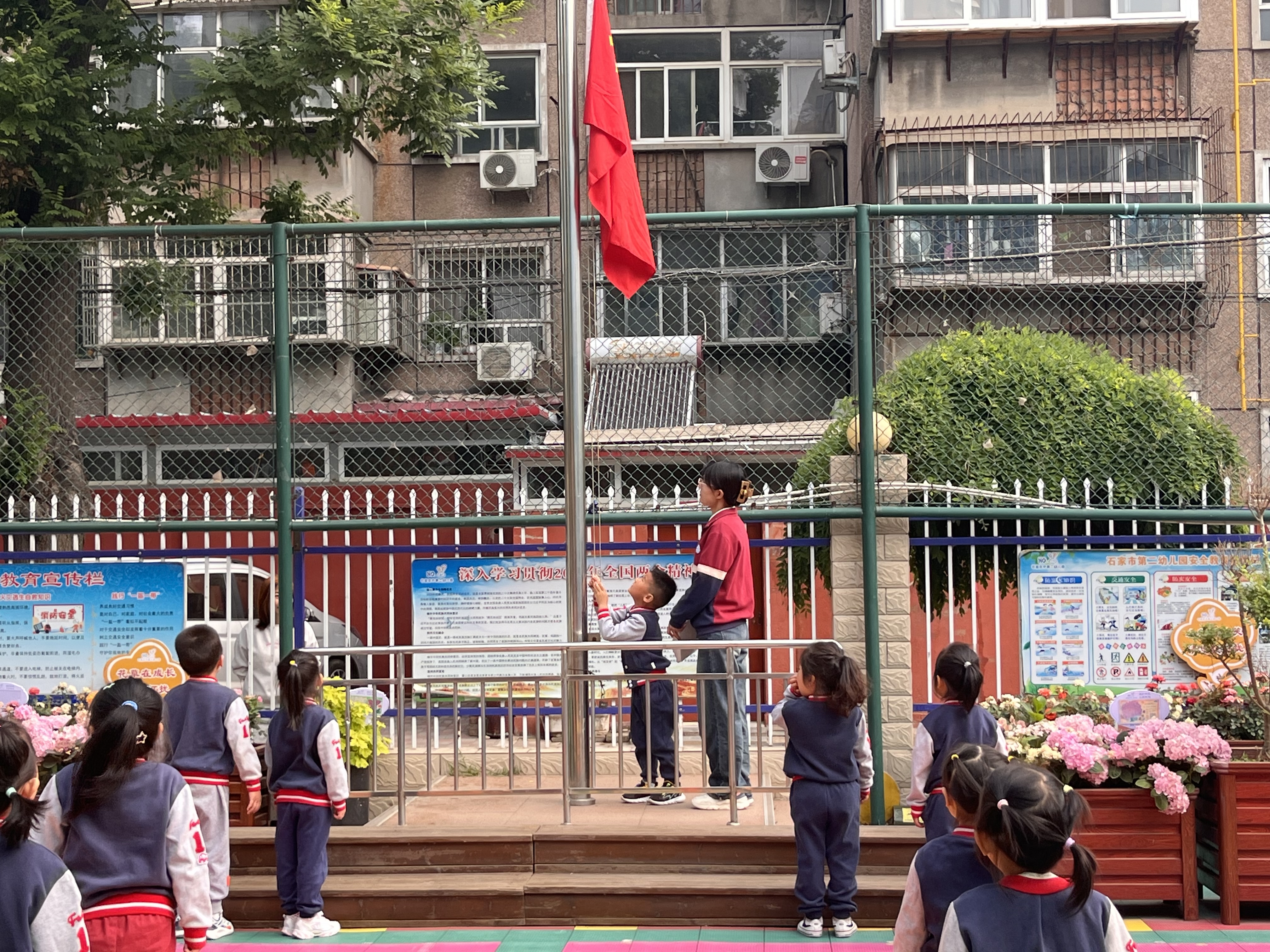 在清晨的阳光下,孩子们带着灿烂的笑容,踏着轻快的步伐走进幼儿园,开始了新一天的生活。每个周一的早晨,幼儿园都会举行庄重而神圣的升旗仪式,这不仅是幼儿园生活的一个重要环节,更是向孩子们传递爱国主义情感的重要方式。 随着升旗仪式的开始,孩子们整齐地列队在操场上,小升旗手和小护旗手们昂首挺胸,迈着坚定的步伐走向升旗台。他们的目光稚嫩而严肃,彰显着身为小升旗手和小护旗手的骄傲与自豪。当雄壮的国歌声响起,鲜艳的五星红旗在孩子们的注视中冉冉升起,全场肃立、行注目礼,每个人的脸上都流露出对祖国的无限热爱和崇高敬意。 升旗仪式后,幼儿代表在国旗下发表讲话,本次活动主题是讲述关于母亲节和世界微笑日的内容,进一步激发孩子们的爱母亲的和爱微笑的情感和情绪表达。此外,我们组织孩子们进行园歌表演、精彩游戏等活动。 看似简单的升旗仪式,却蕴含着深厚的爱国主义教育情感。它不仅让孩子们了解了国旗、国歌的象征意义,更让他们在幼小的心灵里播下了爱国的种子。通过升旗仪式,孩子们潜移默化地接受了爱国主义教育,学会了如何表达对祖国的热爱和敬意。这种教育方式不仅有助于培养孩子们的爱国情怀,更有助于塑造他们健全的人格和品质。幼儿园升国旗仪式是一项具有深远意义的教育活动,它让孩子们在庄严的仪式中感受到祖国的伟大和民族的自豪,从而激发他们的爱国之情,为培养新时代的优秀公民奠定坚实的基础。