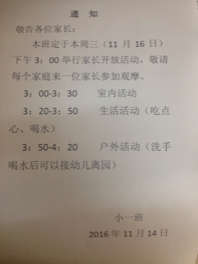 家长开放活动通知