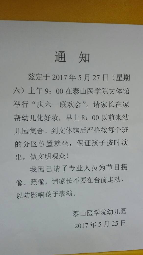 各位家长:请认真阅读下面的通知,按通知要求执行,带好所有服装鞋子及相关配饰。看到本通知后请点到,谢谢合作!