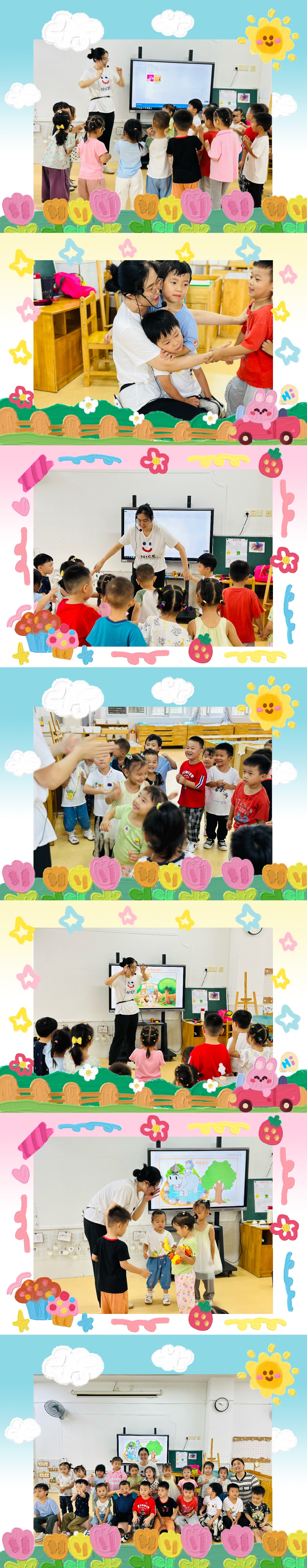 整个活动,孩子们在欢声笑语的气氛中学习英语,他们乐于互动和表达,敢于大胆参与,快乐的声音回荡在教室的每个角落......