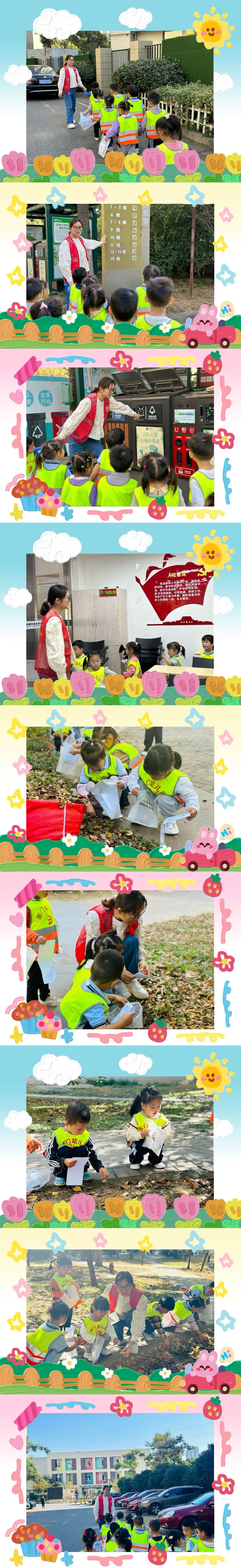 一路上我们看见了垃圾分类区、认识了路标还参观了小区红色网格站,沐浴着秋日的阳光,老师和孩子们一起跟落叶来了一次近距离的接触。我们发现小区的地上很多不同的树叶哦!让我们一起来看一看有没有和记录卡上一样的树叶吧!教育家陈鹤琴说过:“大自然,大社会,都是活教材”,3-6岁儿童学习与发展指南》中也指出“应充分利用社会资源,拓展幼儿生活和学习的空间,借幼儿感兴趣的事物,充分挖掘其潜在的、有利于幼儿身心和谐发展的教育价值。”