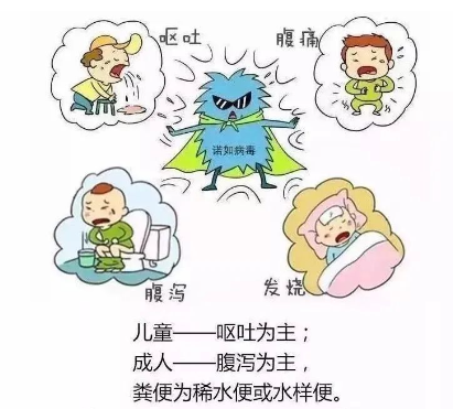 最常见症状是腹泻和呕吐,其次为恶心、腹痛、头痛、发热、畏寒和肌肉酸痛等。诺如病毒的潜伏期相对较短,通常12-48 小时,发病以轻症为主。