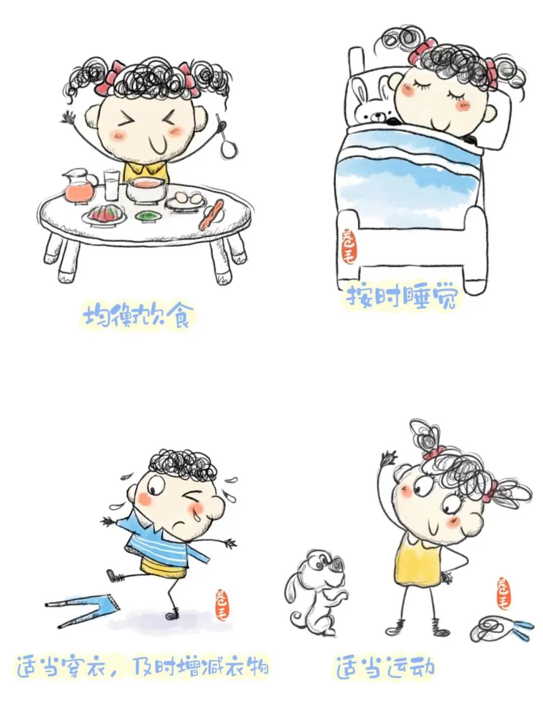 1.及时给孩子增添衣服,不可再追求“秋冻”。 但要注意适量增衣,孩子穿的衣服一般比成人多一件即可。