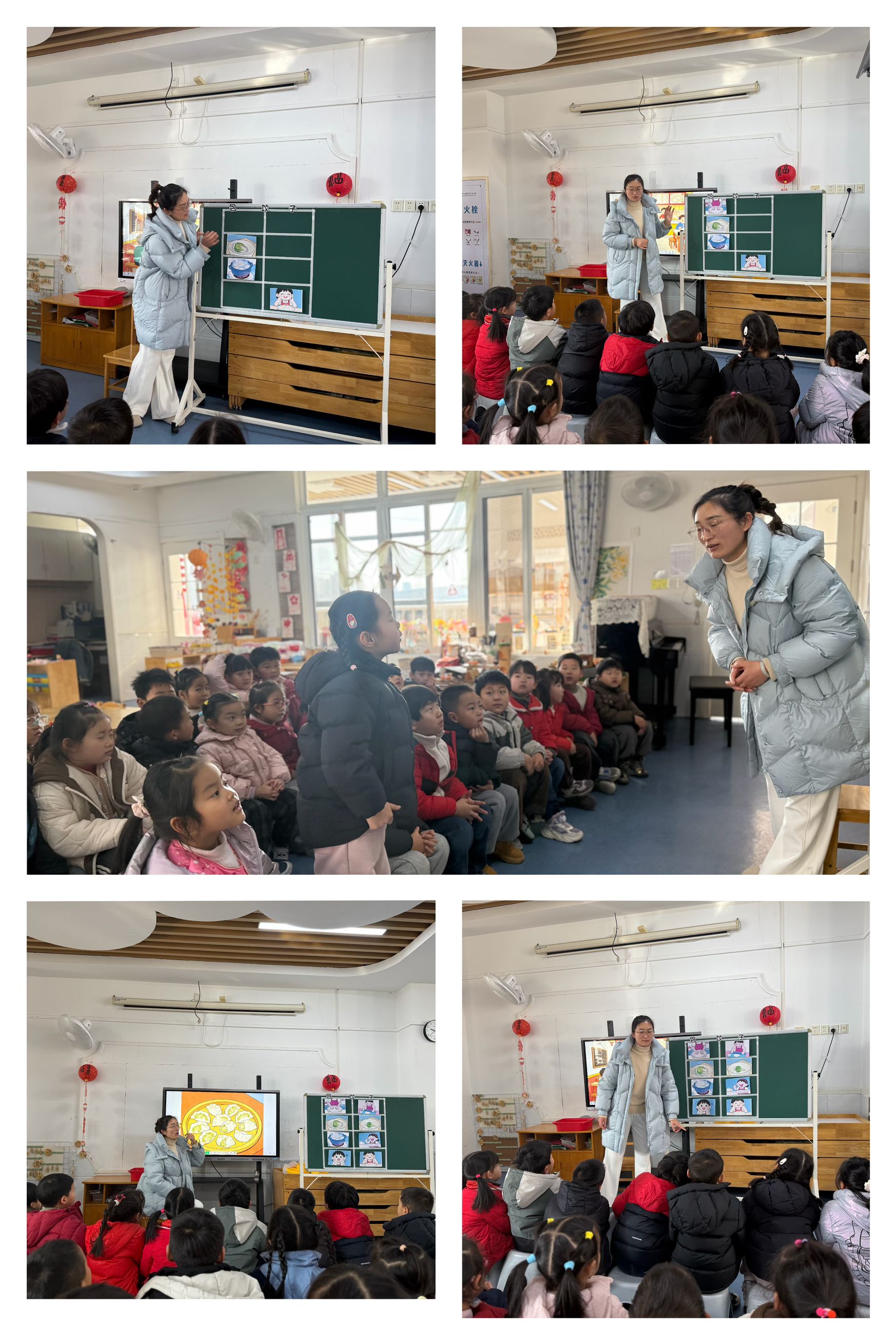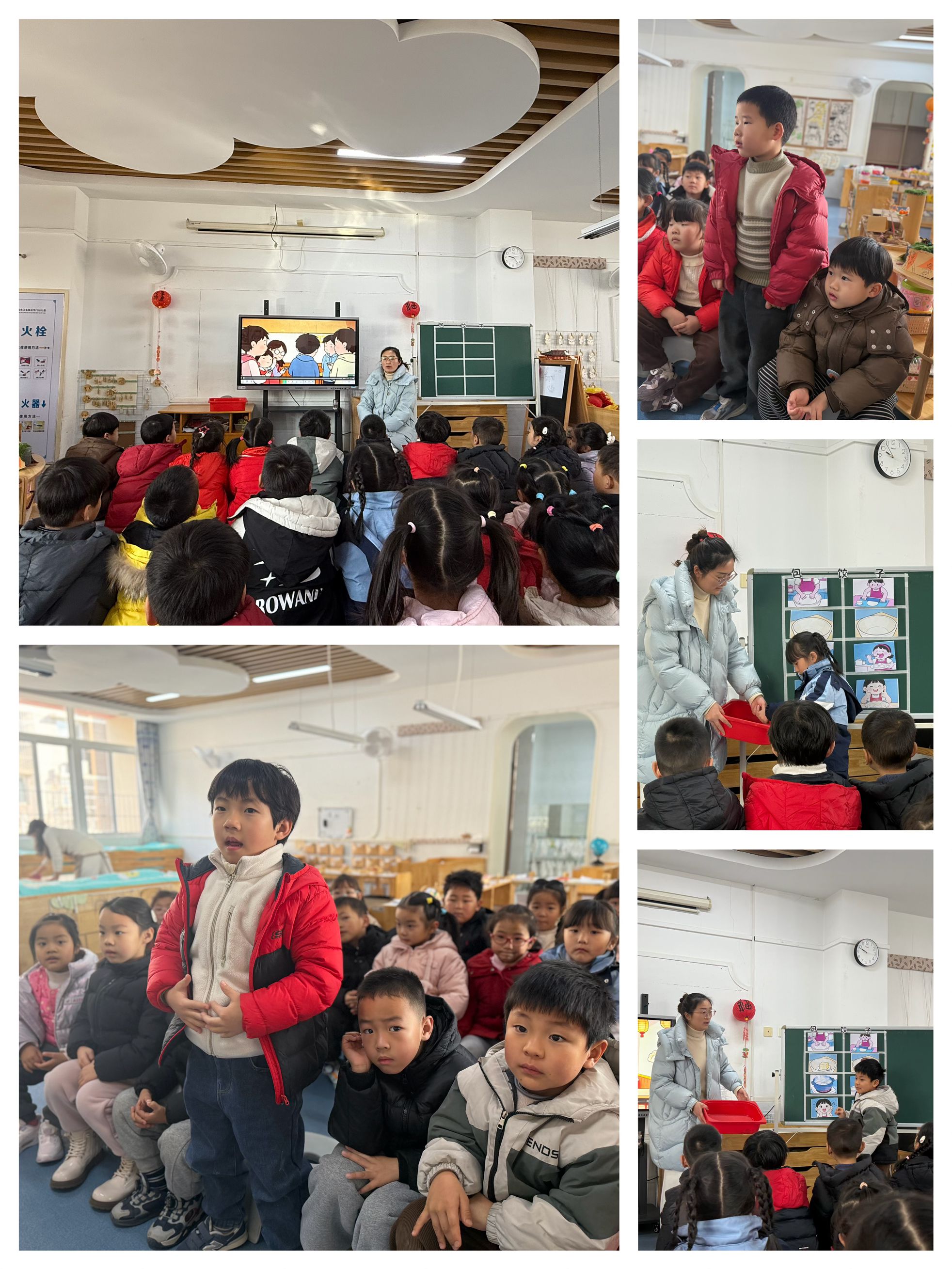 本周我们开展了音乐歌唱活动《包饺子》,活动中,幼儿通过倾听歌曲、结合图谱梳理内容,清晰理解了歌词含义,逐步掌握歌曲演唱技巧,多数幼儿能跟随旋律完整、准确唱出歌曲,边唱边做让演唱更具趣味性,还能大胆结合生活认知替换、创编美食相关歌词,在歌唱、创编与互动的过程中,幼儿充分体验到音乐活动的乐趣,更在对包饺子流程的演绎中感受了传统民俗氛围,加深了对传统美食的喜爱之情,有效达成了本次活动的情感与能力培养目标。整体活动中,幼儿参与积极性高,互动氛围浓厚,也为后续将音乐活动与生活实践、传统文化体验相结合奠定了基础。