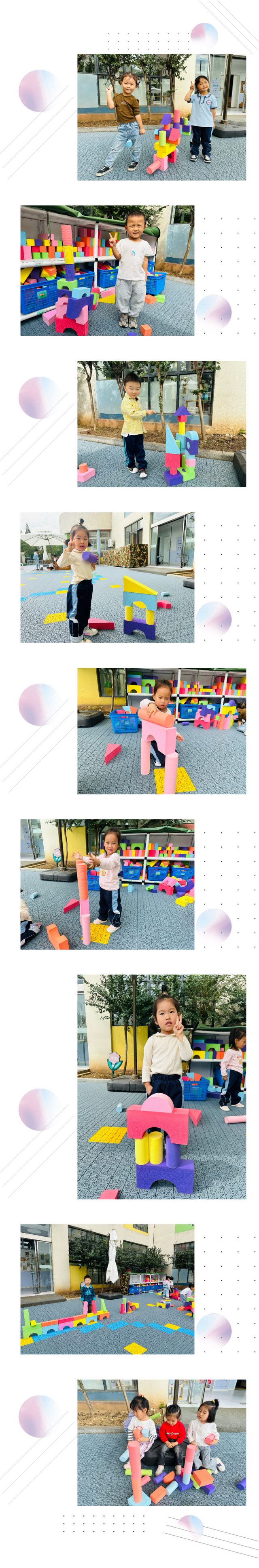 多彩软体积木有着多样的形状,看看小二班宝贝们的创意拼搭吧。