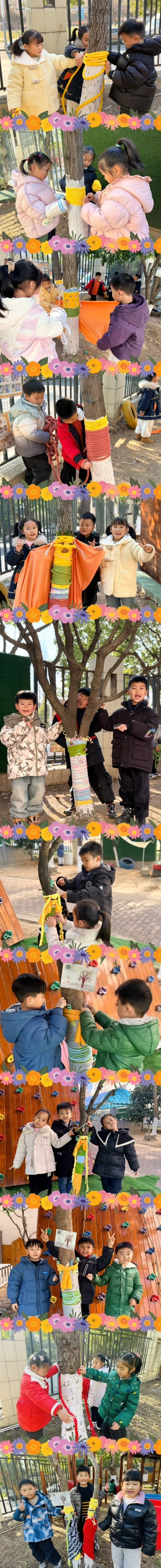 活动中,孩子们专注又投入,不仅锻炼了手部精细动作和合作能力,更在亲手实践中懂得了关爱植物的意义。看着穿上“暖衣”的小树焕然一新,孩子们的脸上洋溢着成就感与幸福感。