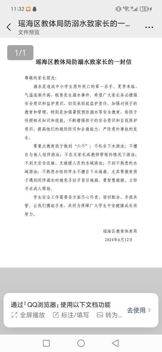 暑期致家长一封信
