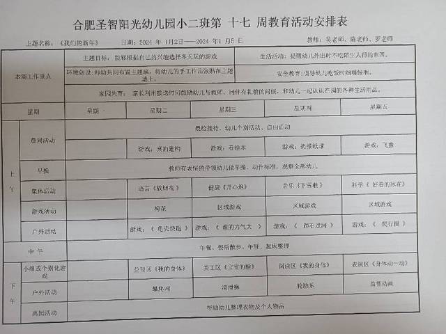 一月份第十七周计划