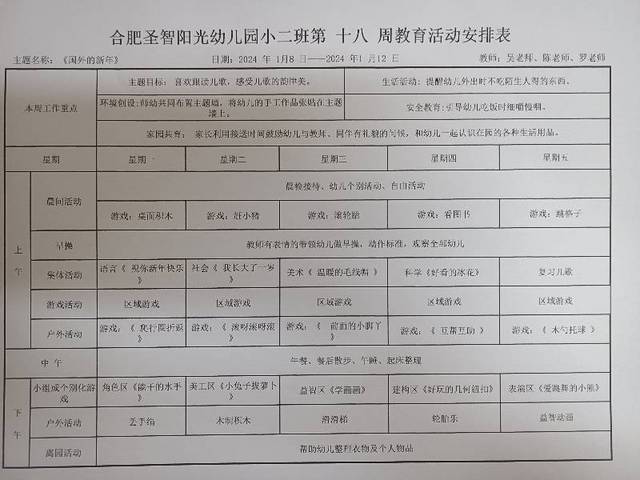一月份第十八周计划