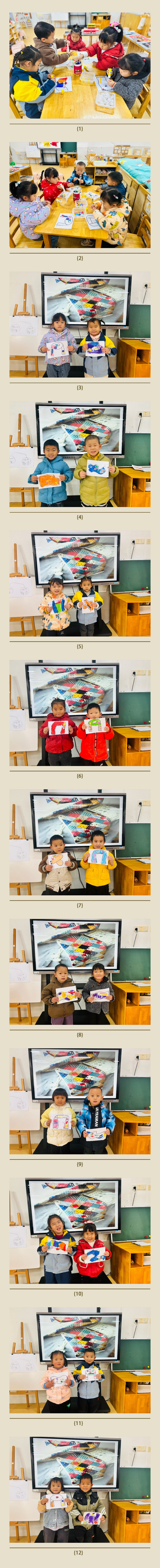 今天,我们用了不同的材料来装饰围巾,有瓦楞纸、雪梨纸、毛球、棉花、玉米粒等,孩子们能自主动手选择自己喜欢的材料进行围巾的装饰,我们一起来欣赏一下吧!
