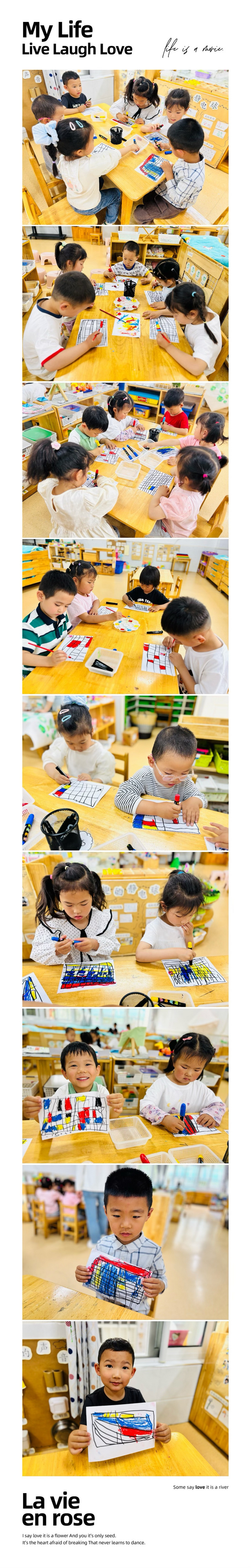 格子画—— 鲜明的色块,黑白的线条,交汇出奇妙的格子,这便是蒙德里安格子画的奥秘。今天我们开展了创意格子画,孩子们采用蒙德里安的绘画风格,以三原色为主色调,用手中的画笔,画出了一件件格子画作品。