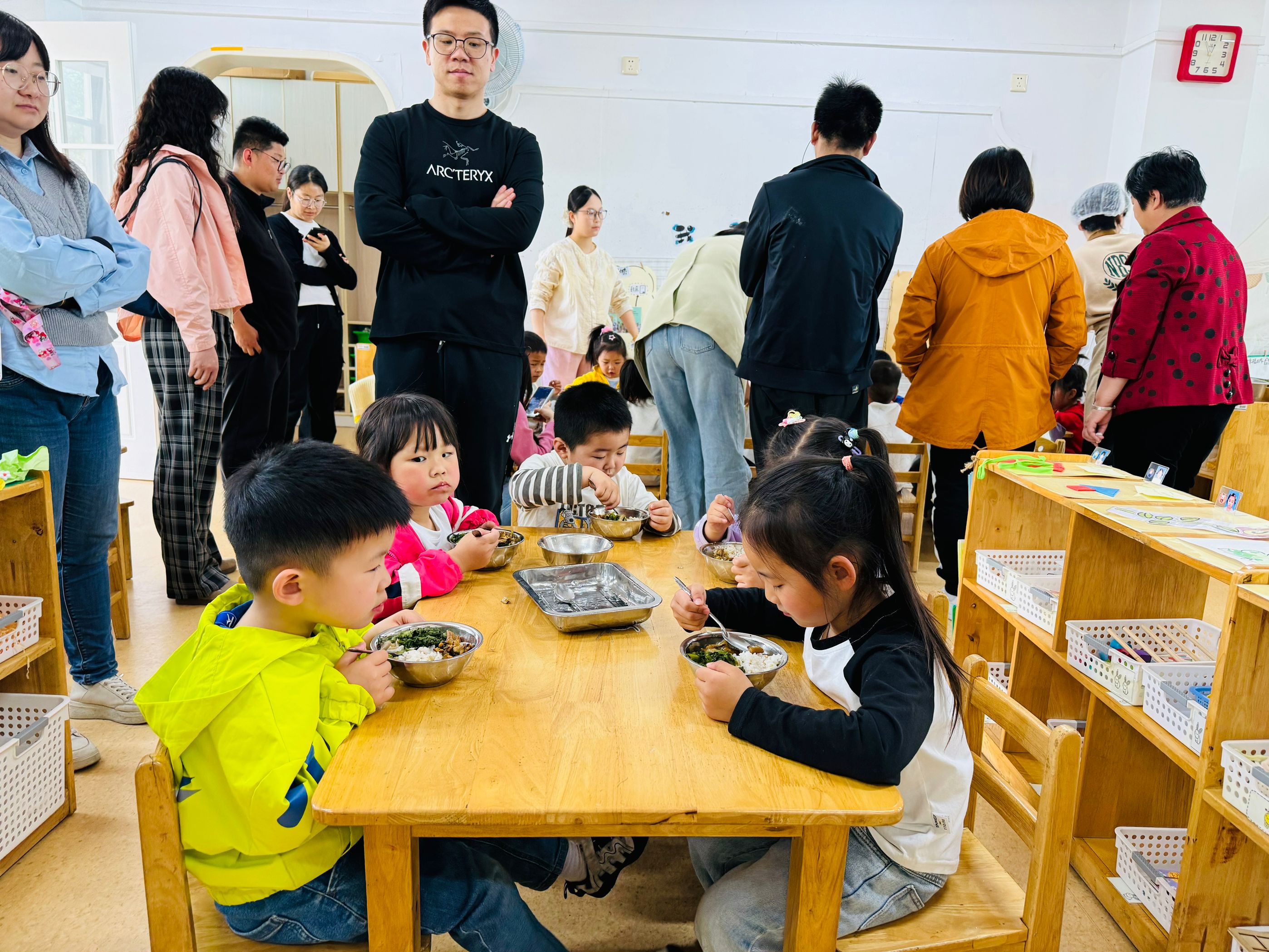 自主进餐开始了,孩子们有序的取餐,认真做好自我服务,家长们在静态观摩中以观察者的视角,看到孩子们的自主性。