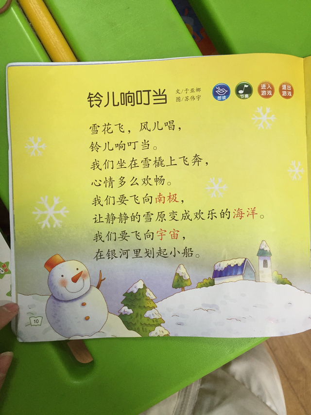今日亲子阅读,动态阅读第五册第10页《玲儿响叮当》。家长引导幼儿阅读,并且将相应的字词拆下来。巩固字词的认识。