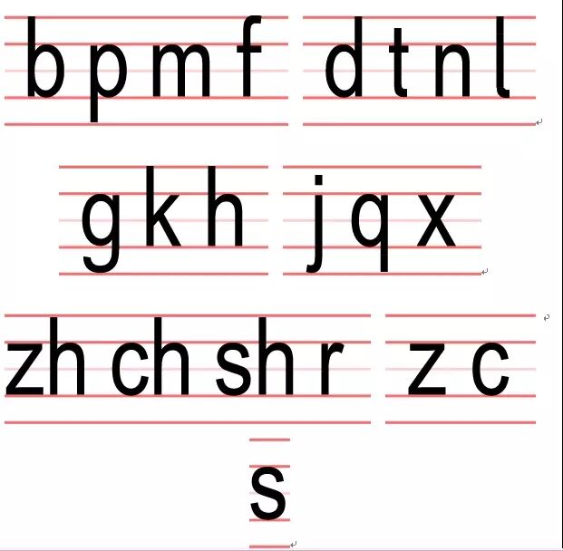 声母:b p m f d t n l g k h jq x zh ch sh r z c s y w