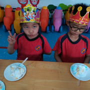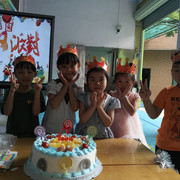宝贝们开心唱着生日歌,跟着老