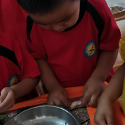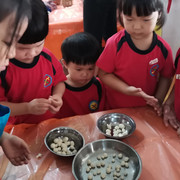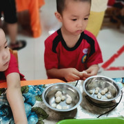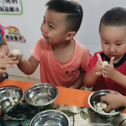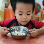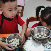 孩子们自己动手学做小汤丸,品