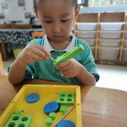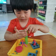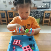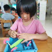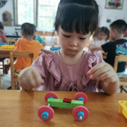 孩子们认真操作科学材料,探索