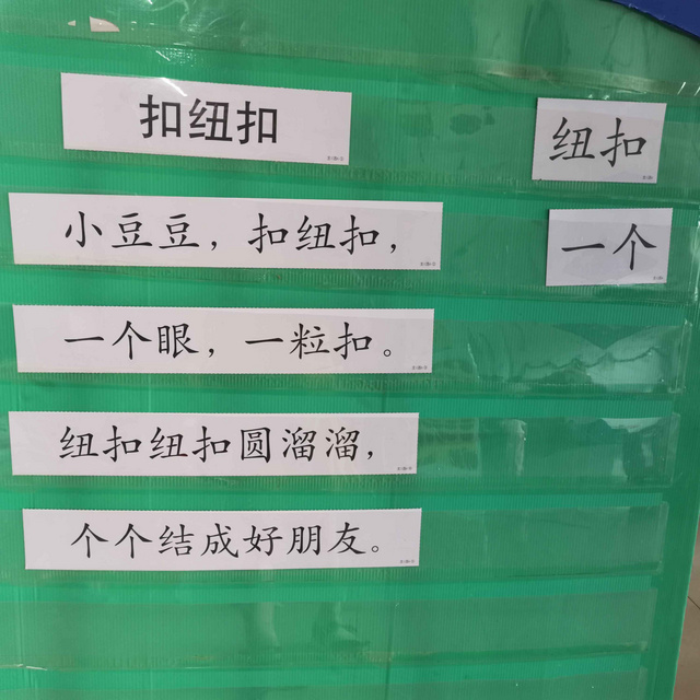 1.红树林快乐阅读活动《扣纽扣》学习儿歌,学会扣纽扣。认读字词:纽扣,一个。附下图