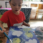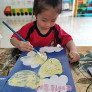 小朋友上美术课上很认真。