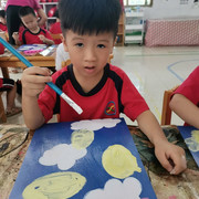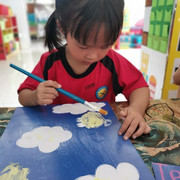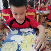小朋友上美术课上很认真。
