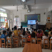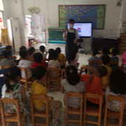 孩子们认真听老师讲安全教育