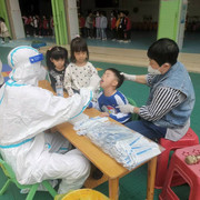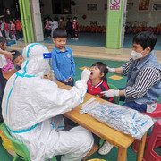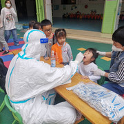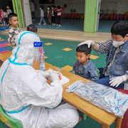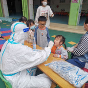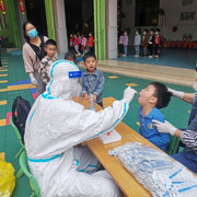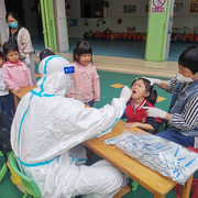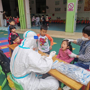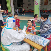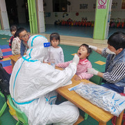 孩子们非常配合医护人员验核酸