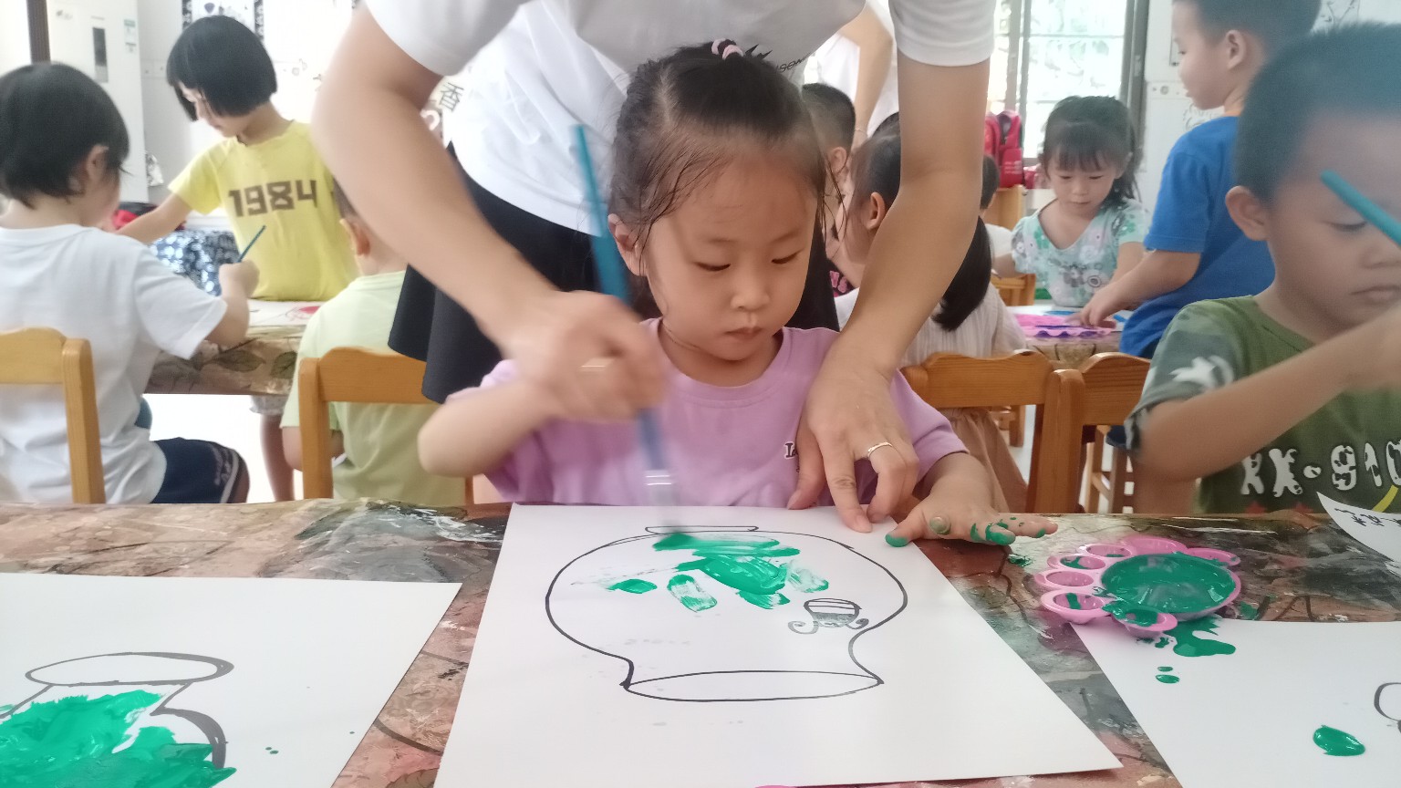 相片描述:小朋友们认真的在画画