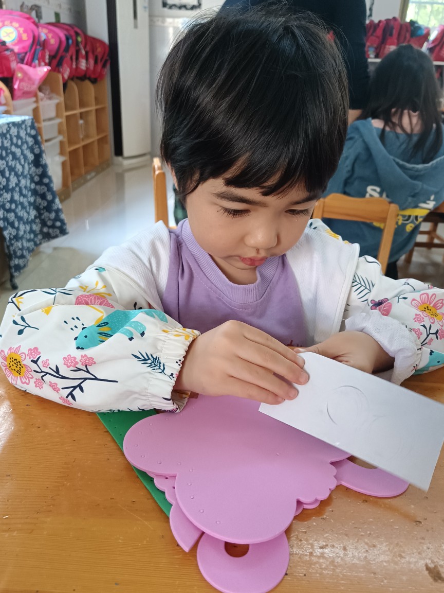 小朋友正在认真的做动物包包