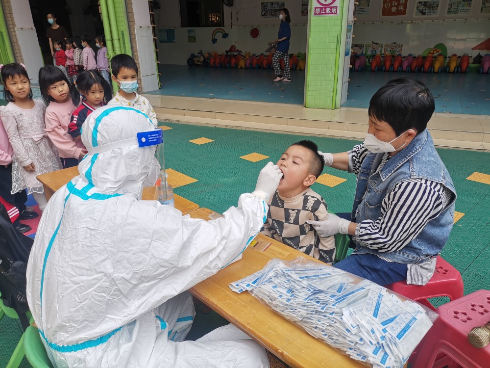 孩子们非常配合医护人员验核酸