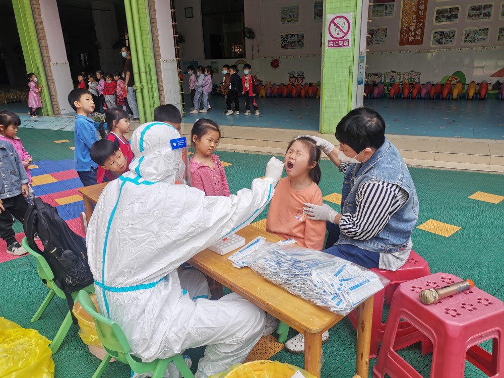 孩子们非常配合医护人员验核酸