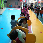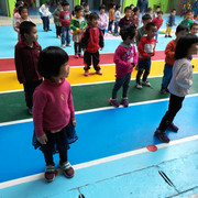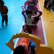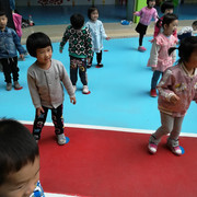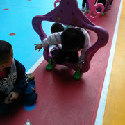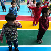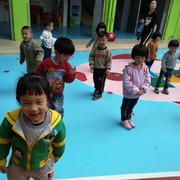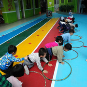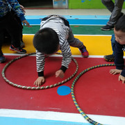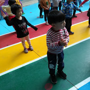 小朋友都很认真的玩游戏,学着